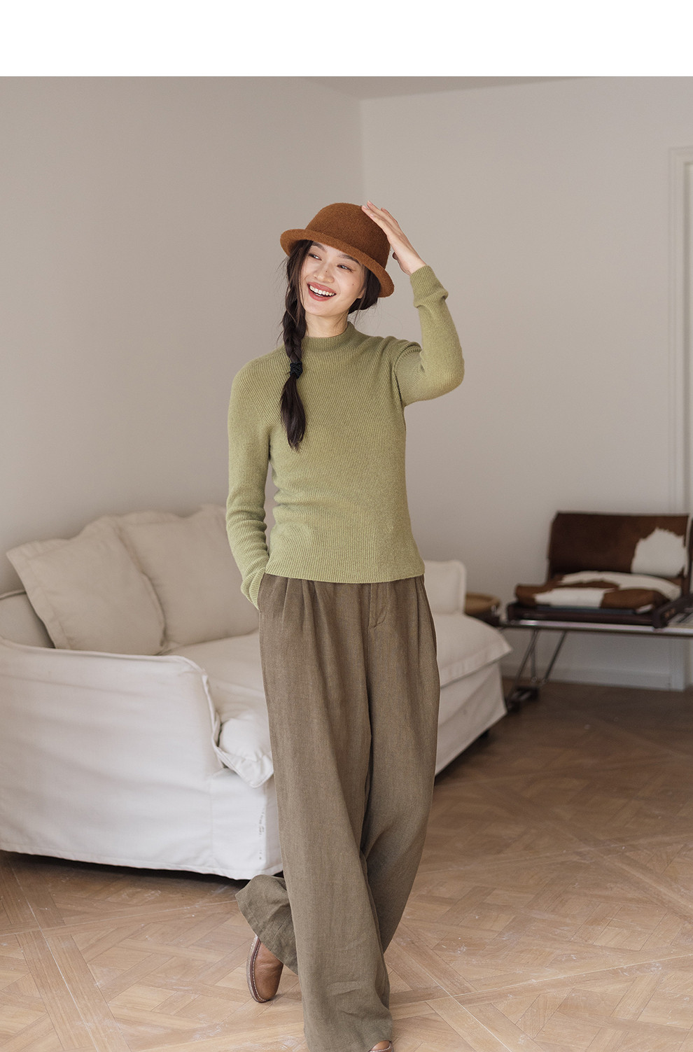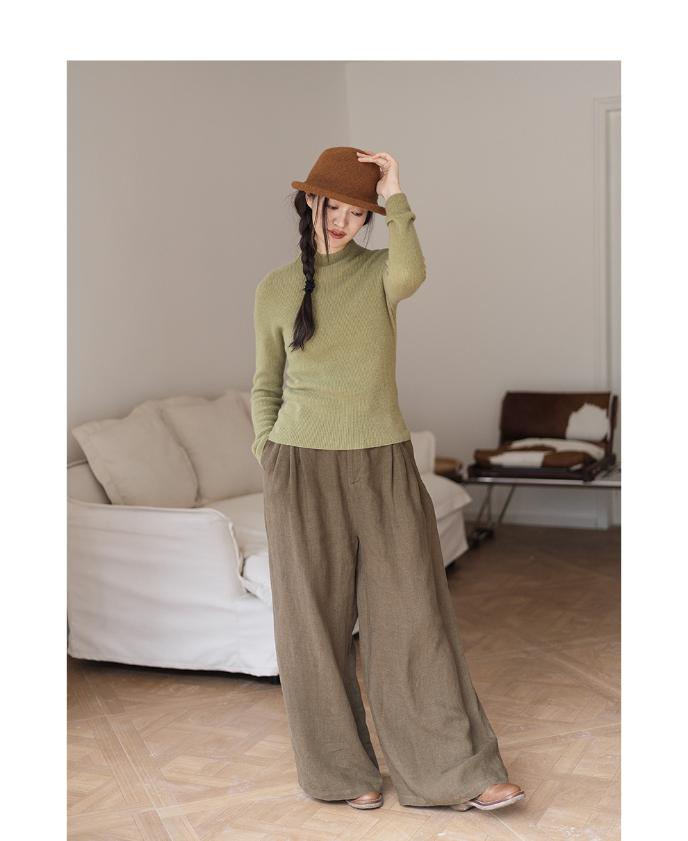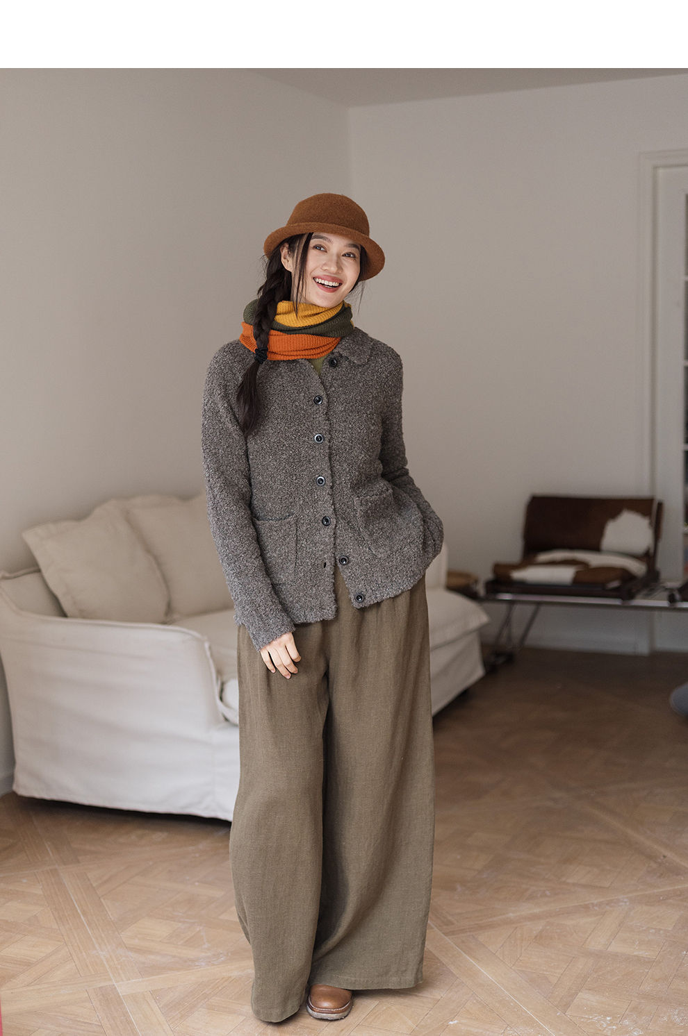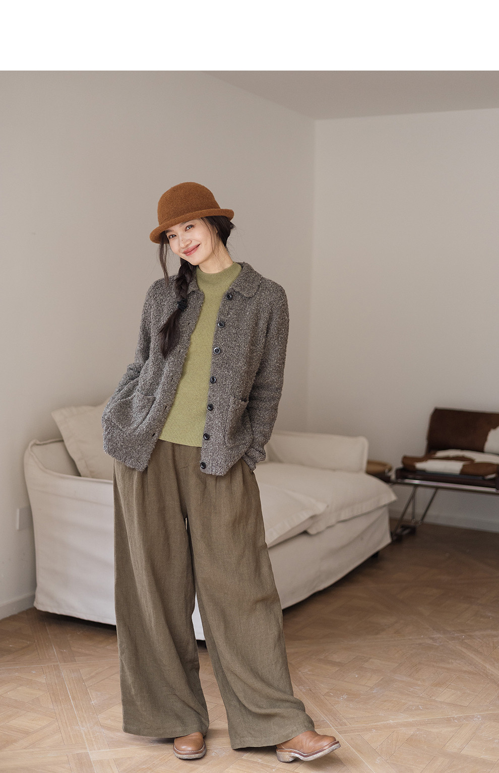 绽放666朵/加厚亚麻半腰松紧宽松阔腿裤女显瘦松弛感休闲裤冬新款