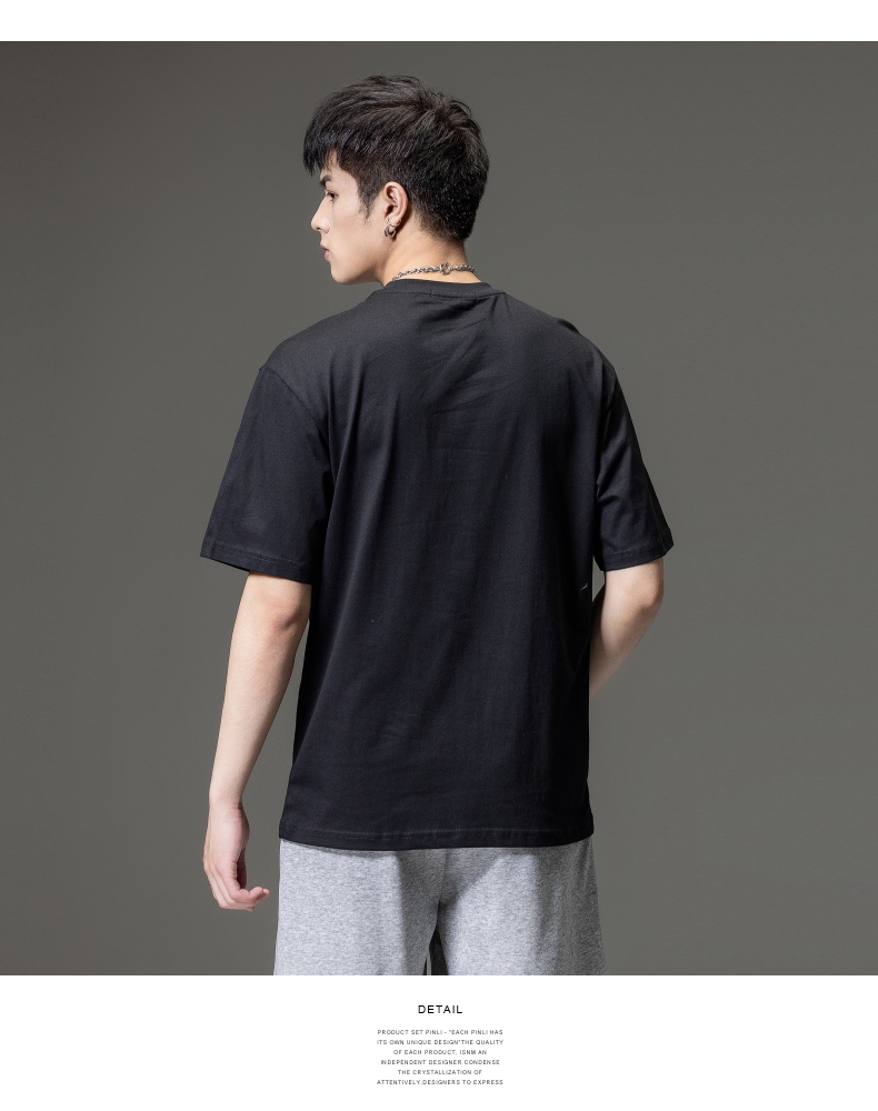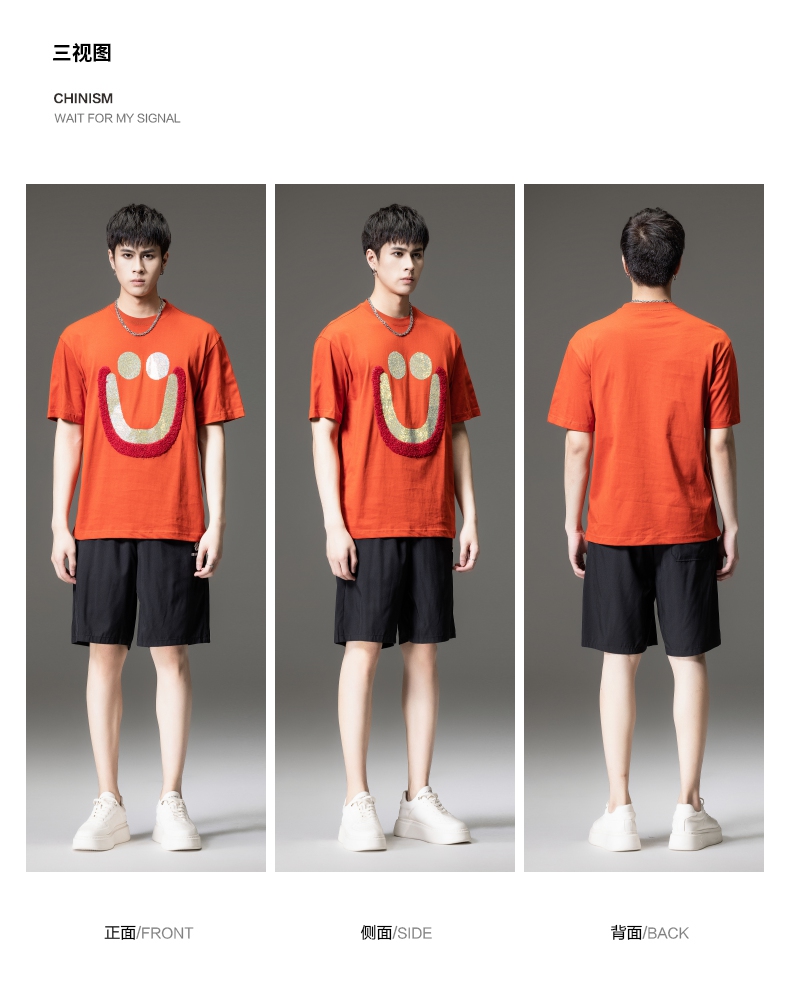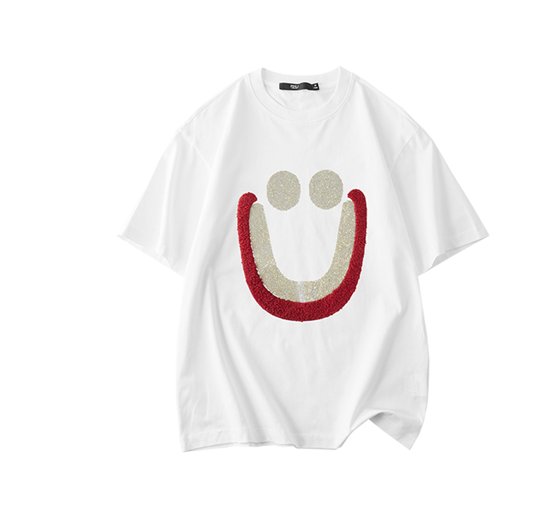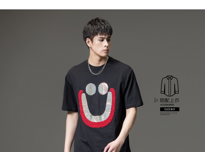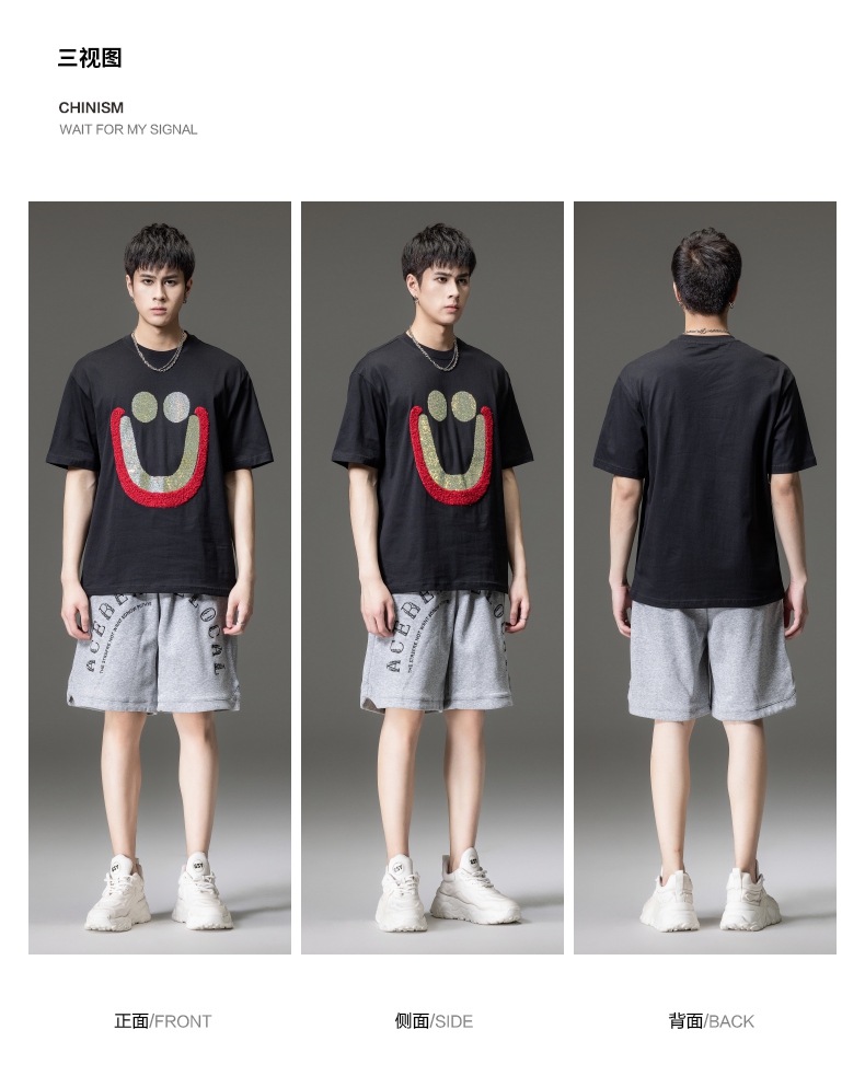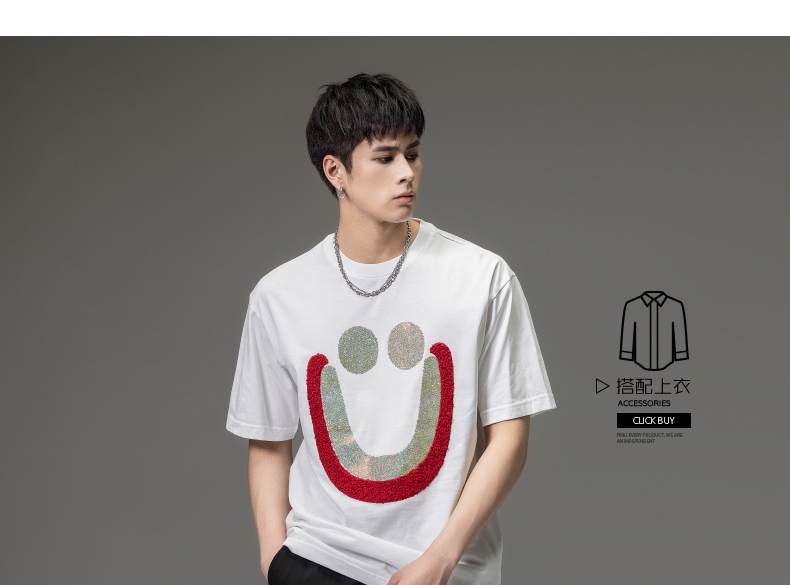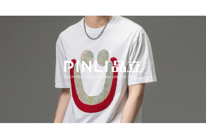 PINLI品立2023夏季新款男士落肩烫钻笑脸圆领短袖T恤BG231111084