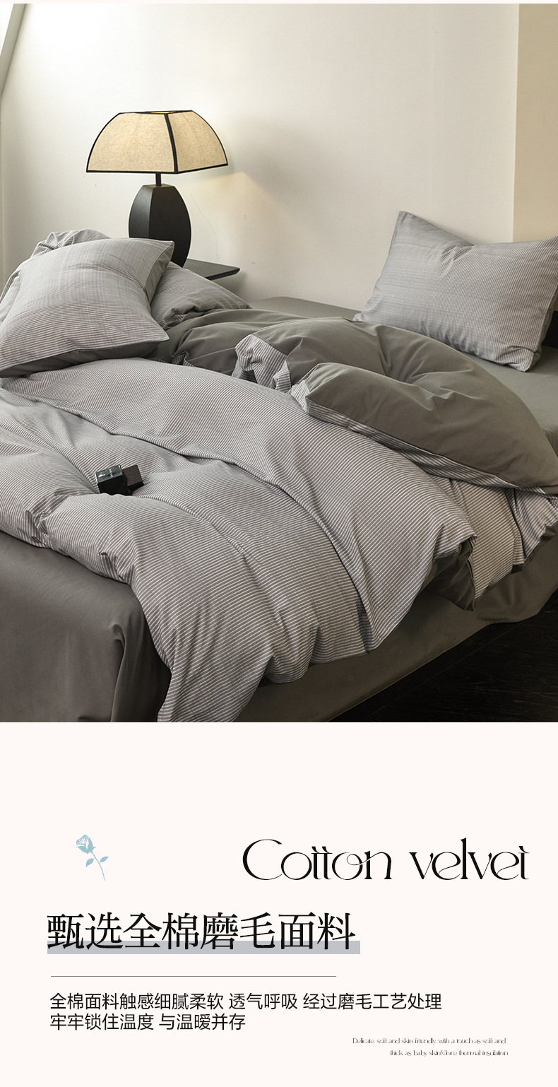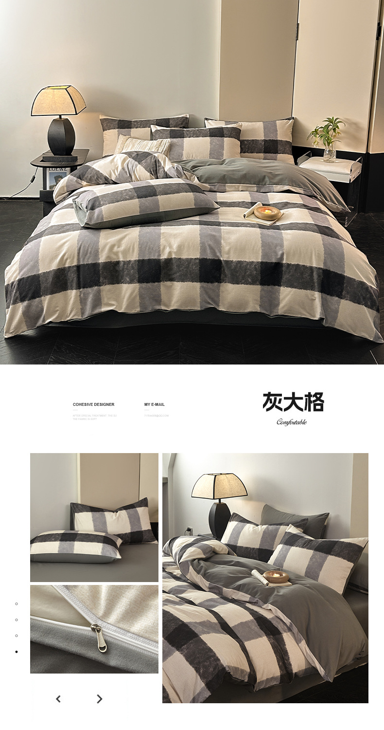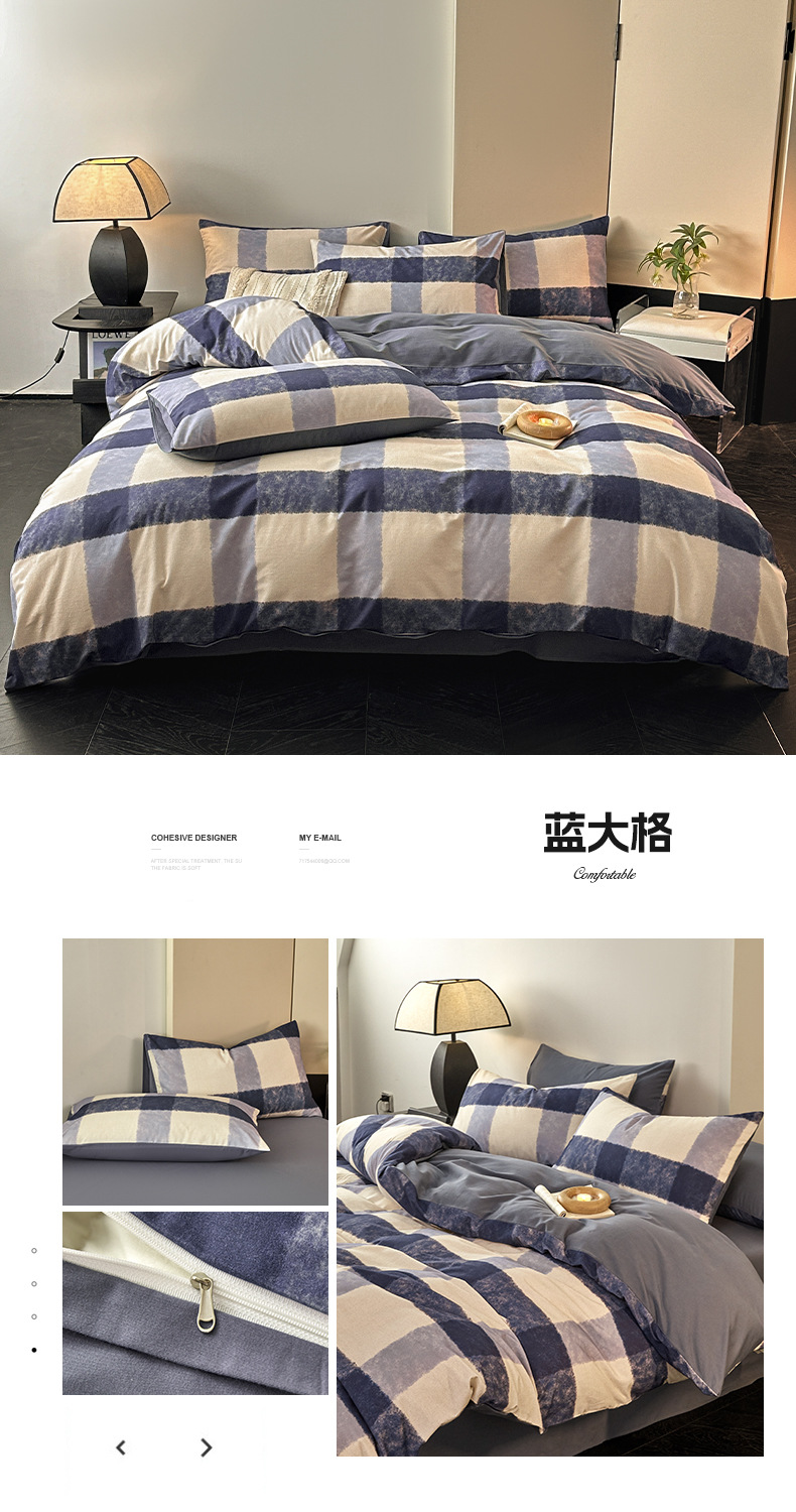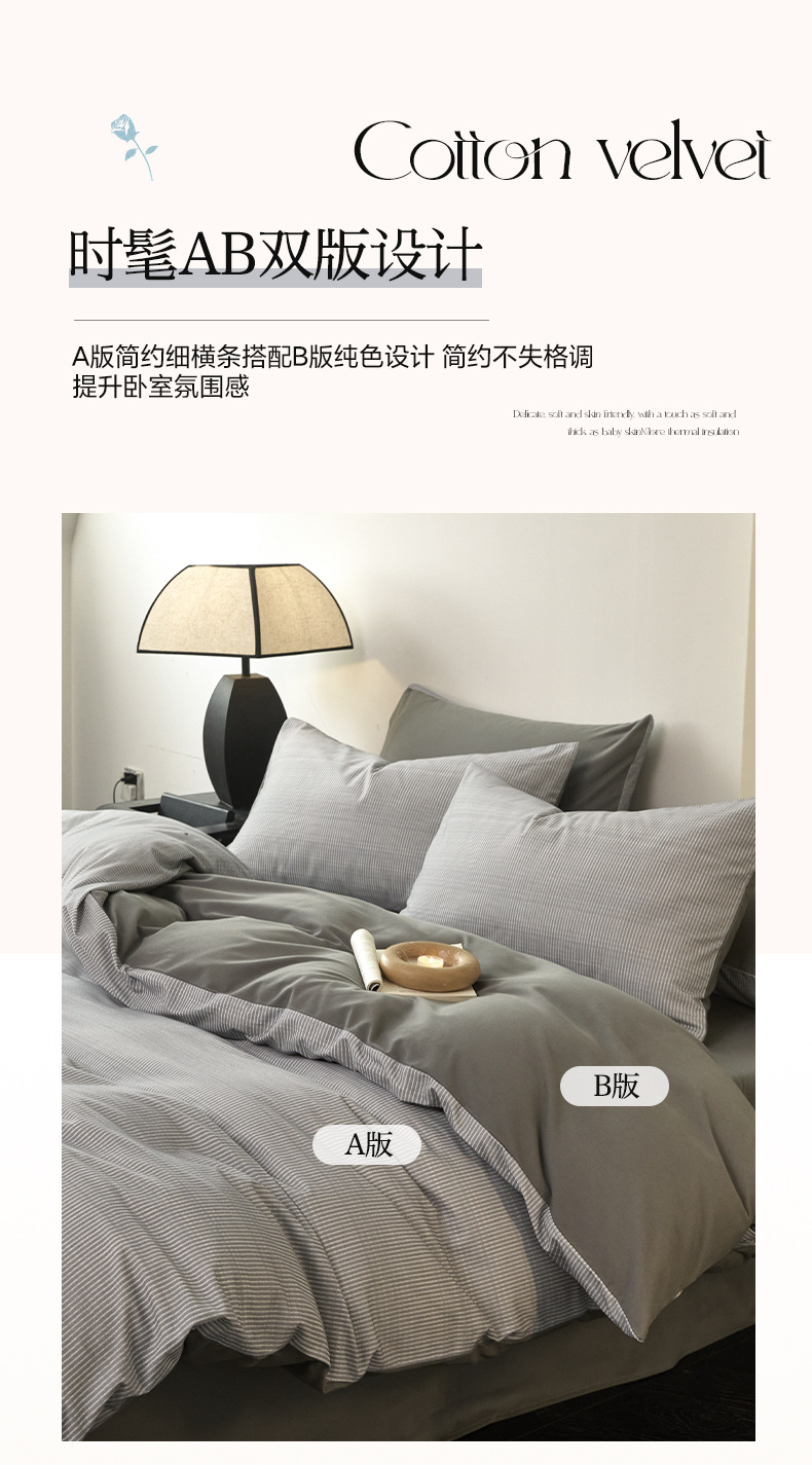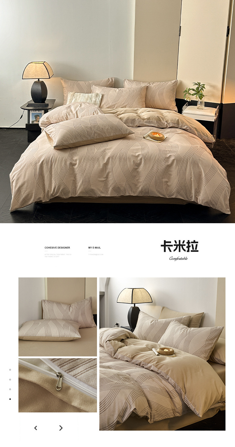 【全棉磨毛】简约风四件套AB双版纯棉被套加厚床单床上用品床笠款三件套2025新款