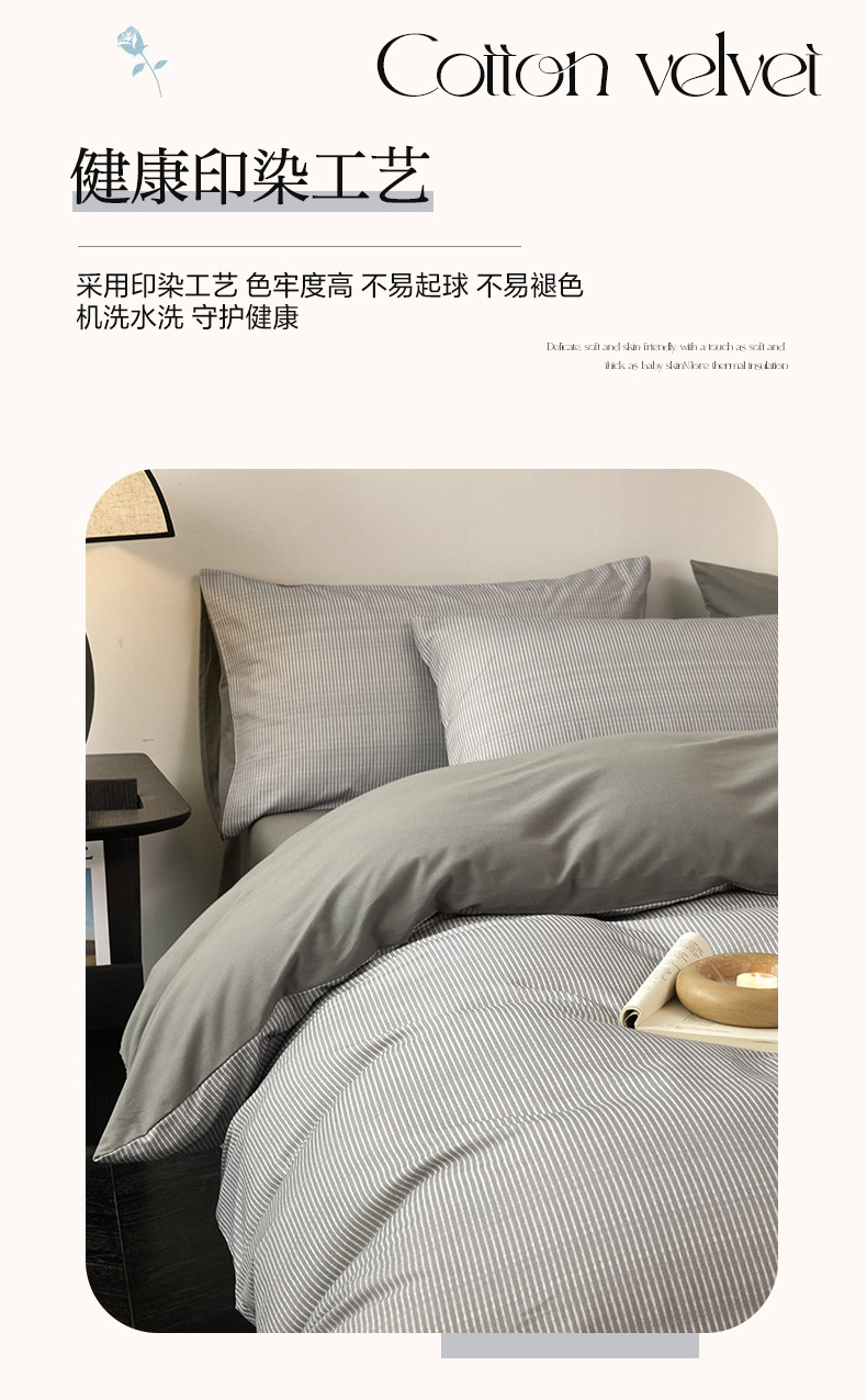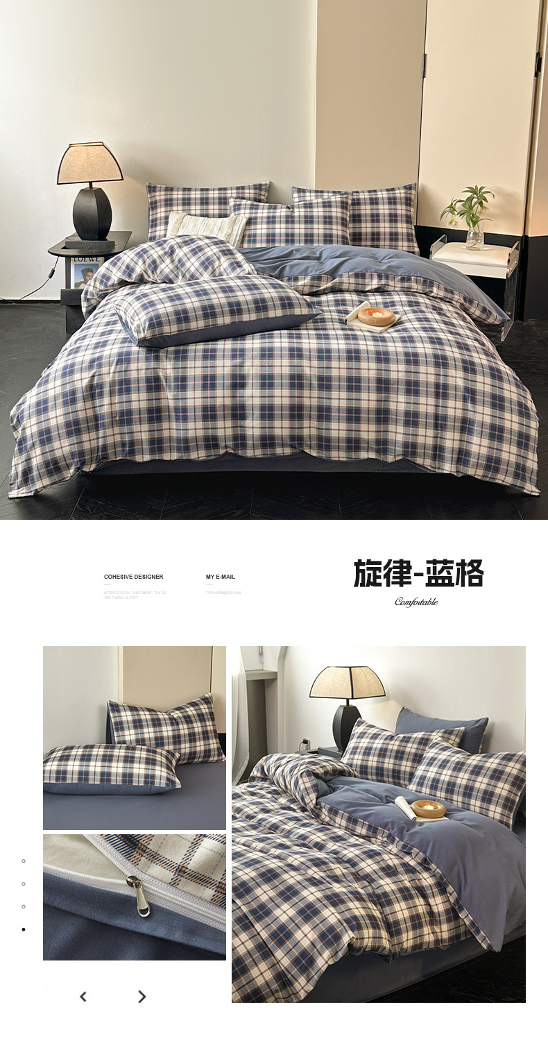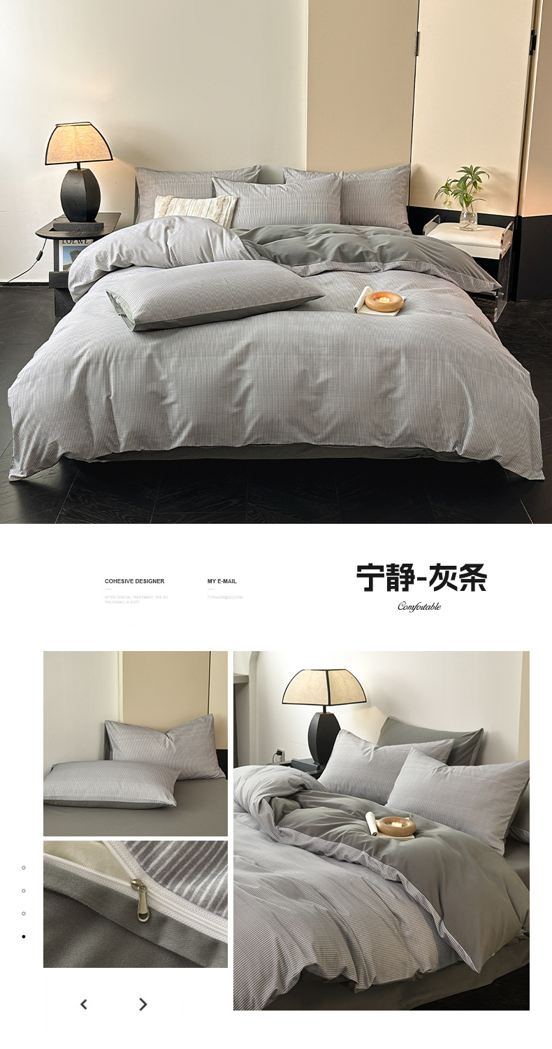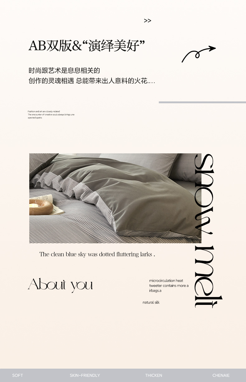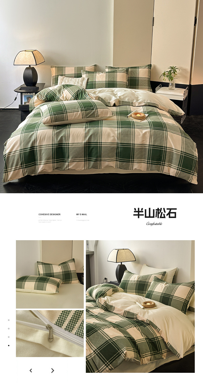 【全棉磨毛】简约风四件套AB双版纯棉被套加厚床单床上用品床笠款三件套2025新款