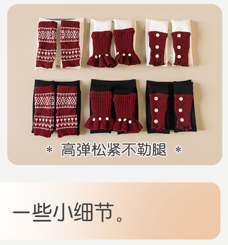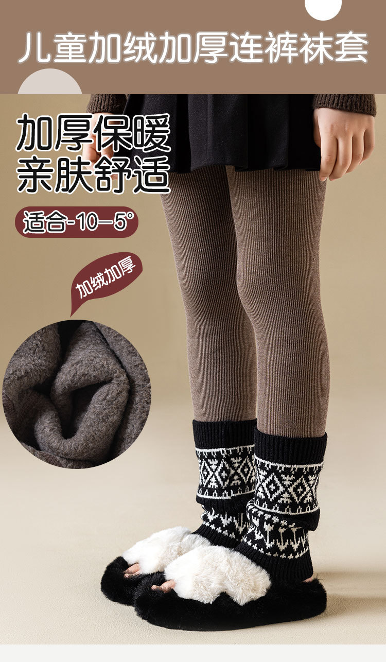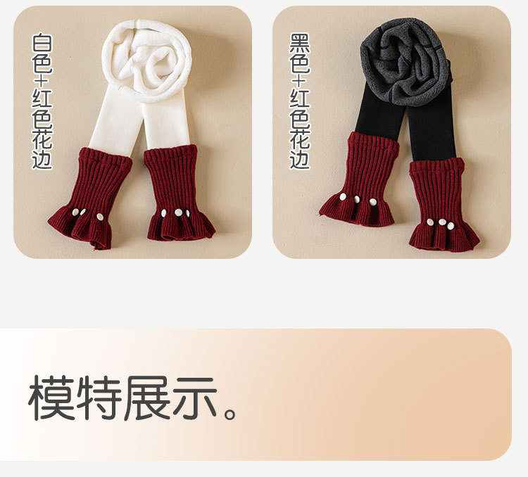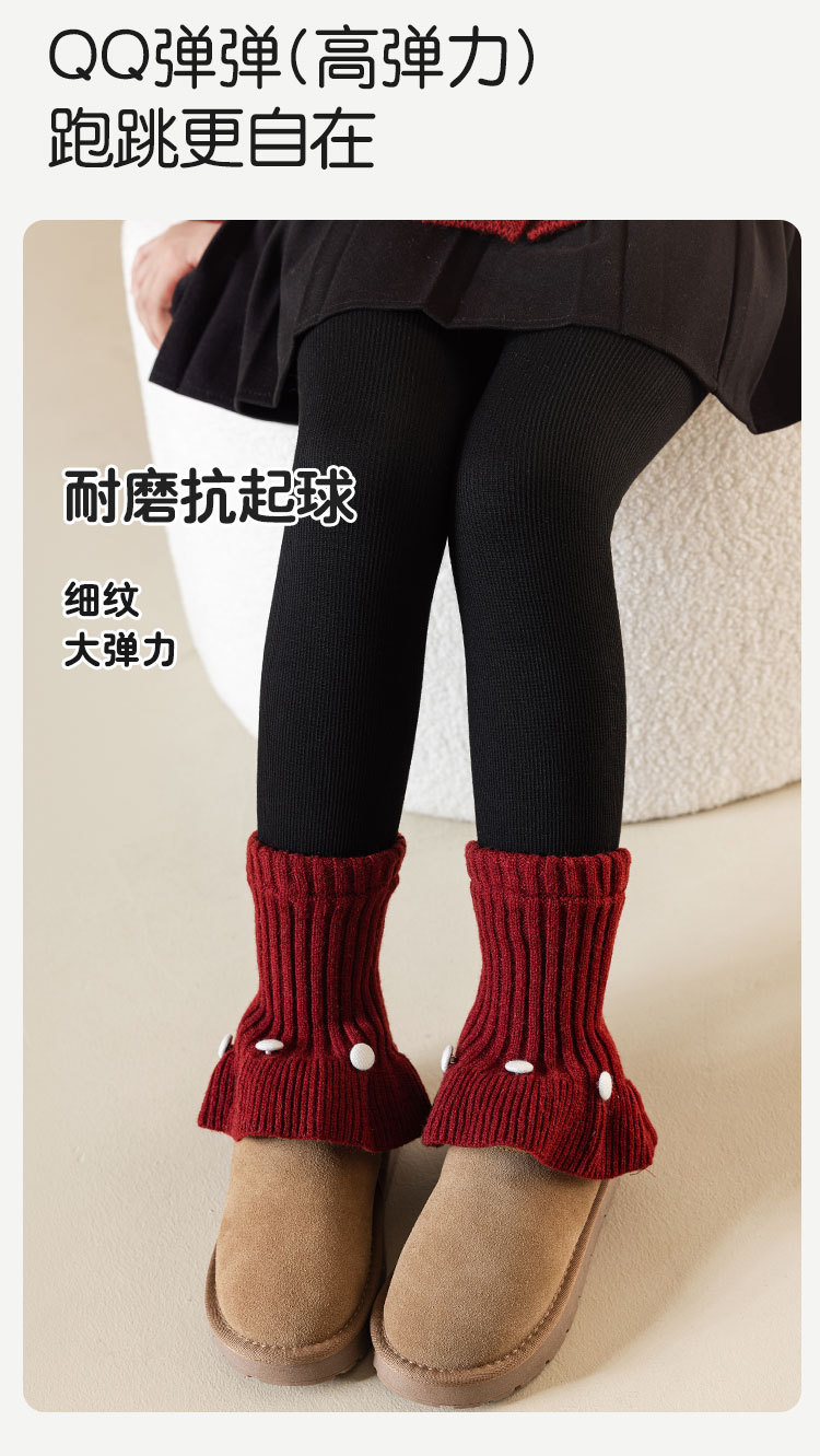 一条过冬~洋气袜套款女童打底裤秋冬外穿高弹力儿童裤子加绒加厚红袜套拼接连裤袜 95-155cm