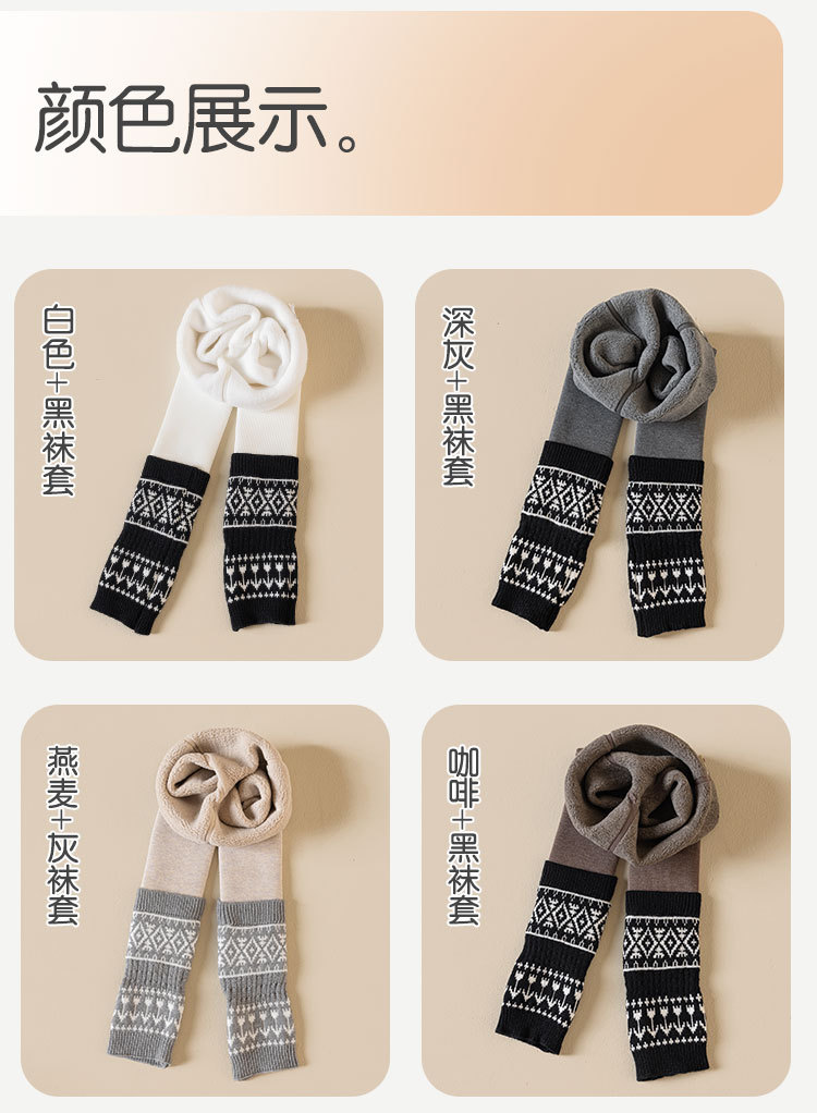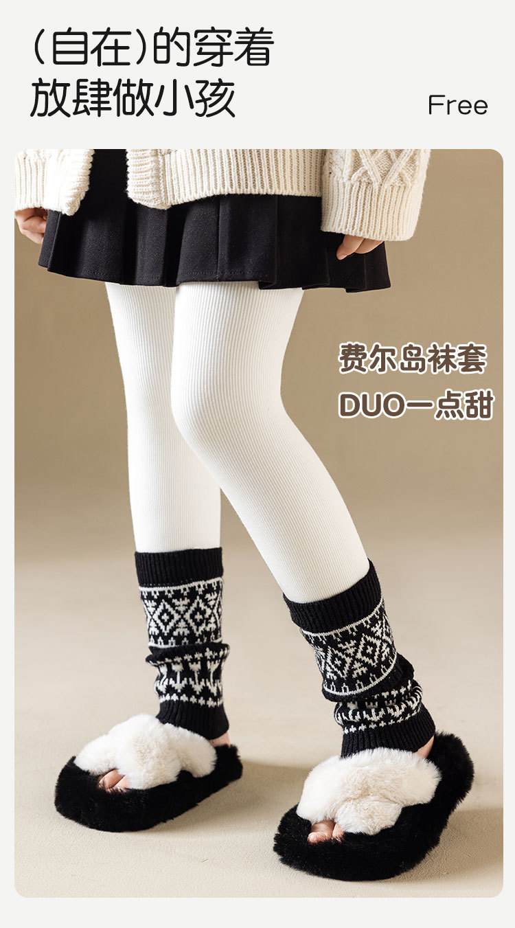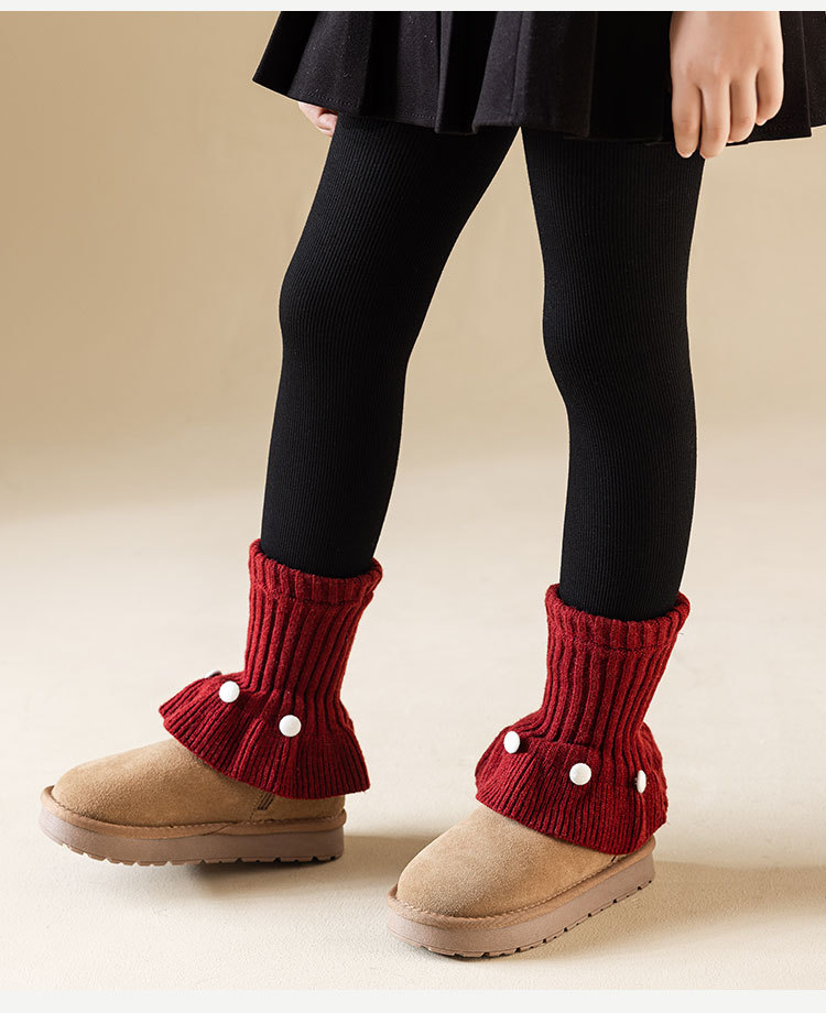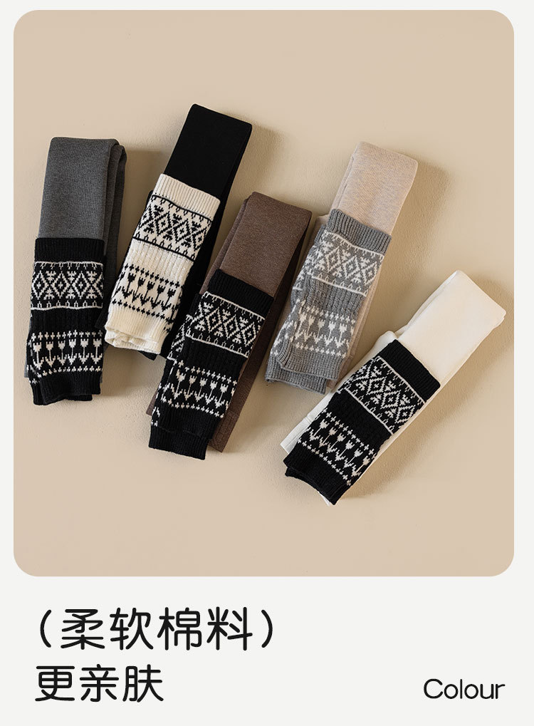 一条过冬~洋气袜套款女童打底裤秋冬外穿高弹力儿童裤子加绒加厚红袜套拼接连裤袜 95-155cm