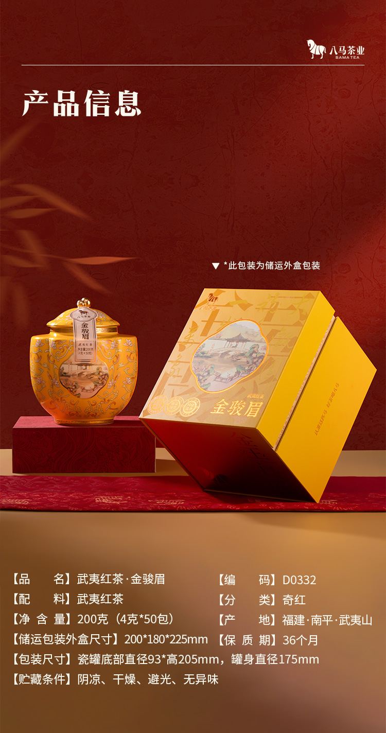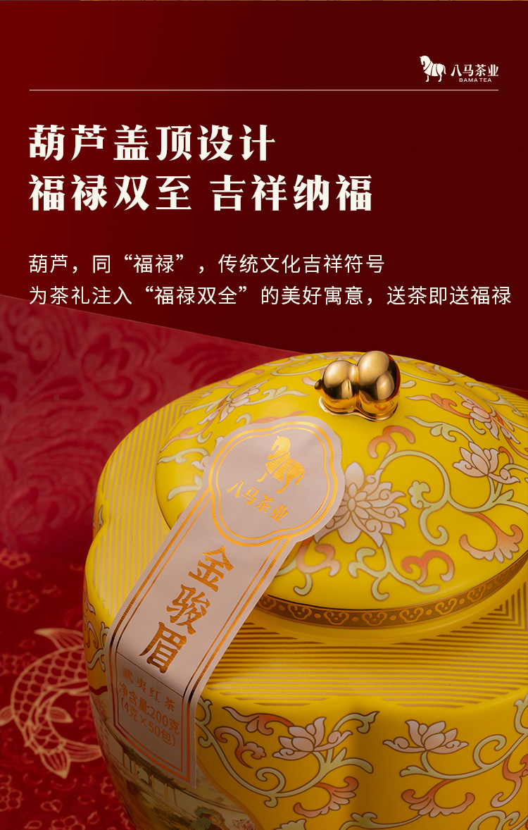 八马茶业|福建武夷山红茶四大茗著·金骏眉茶叶200g 罐装