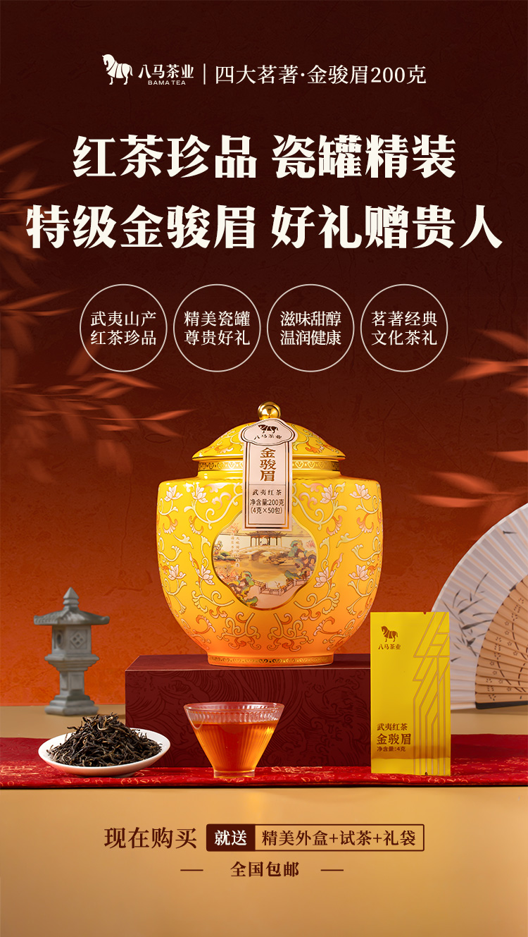 [拍1发2]八马茶业 | 千里江山红茶武夷特级金骏眉熟普高端茶礼盒装160g
