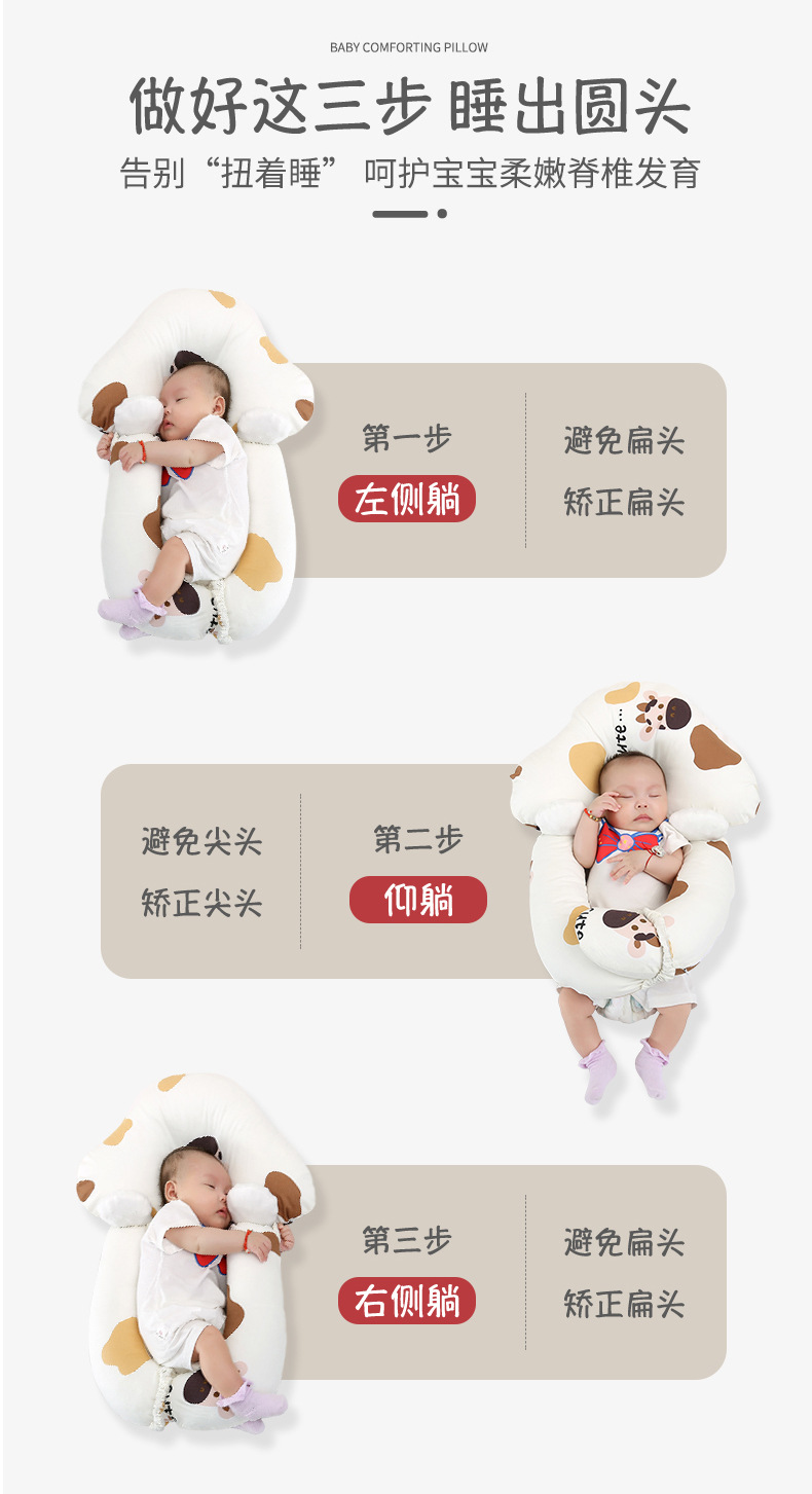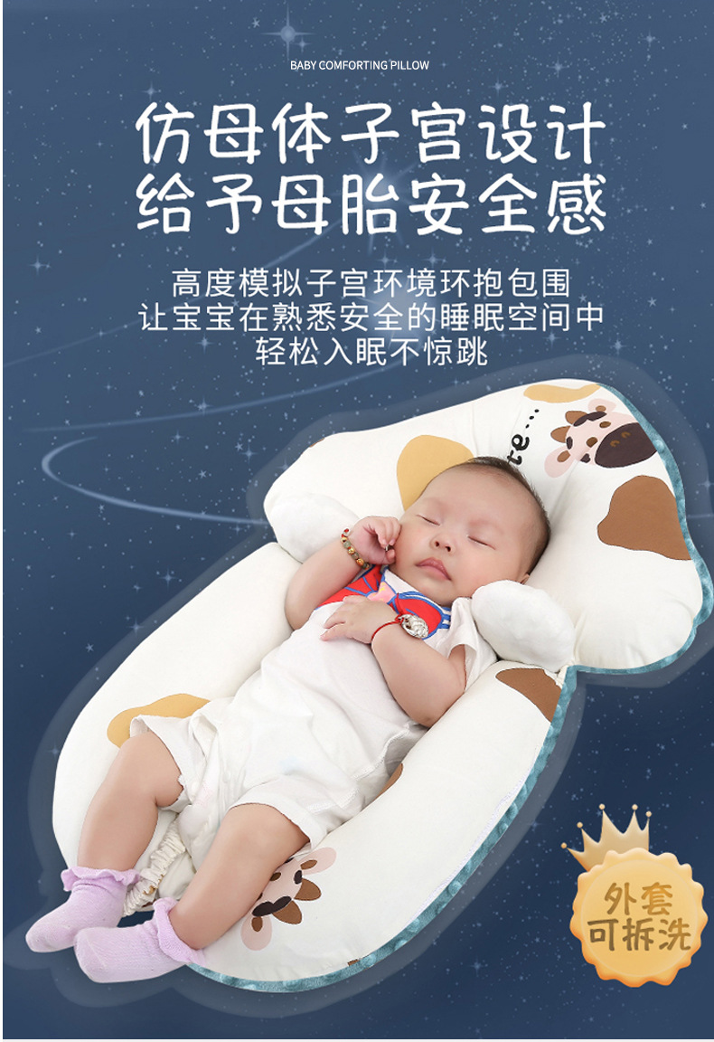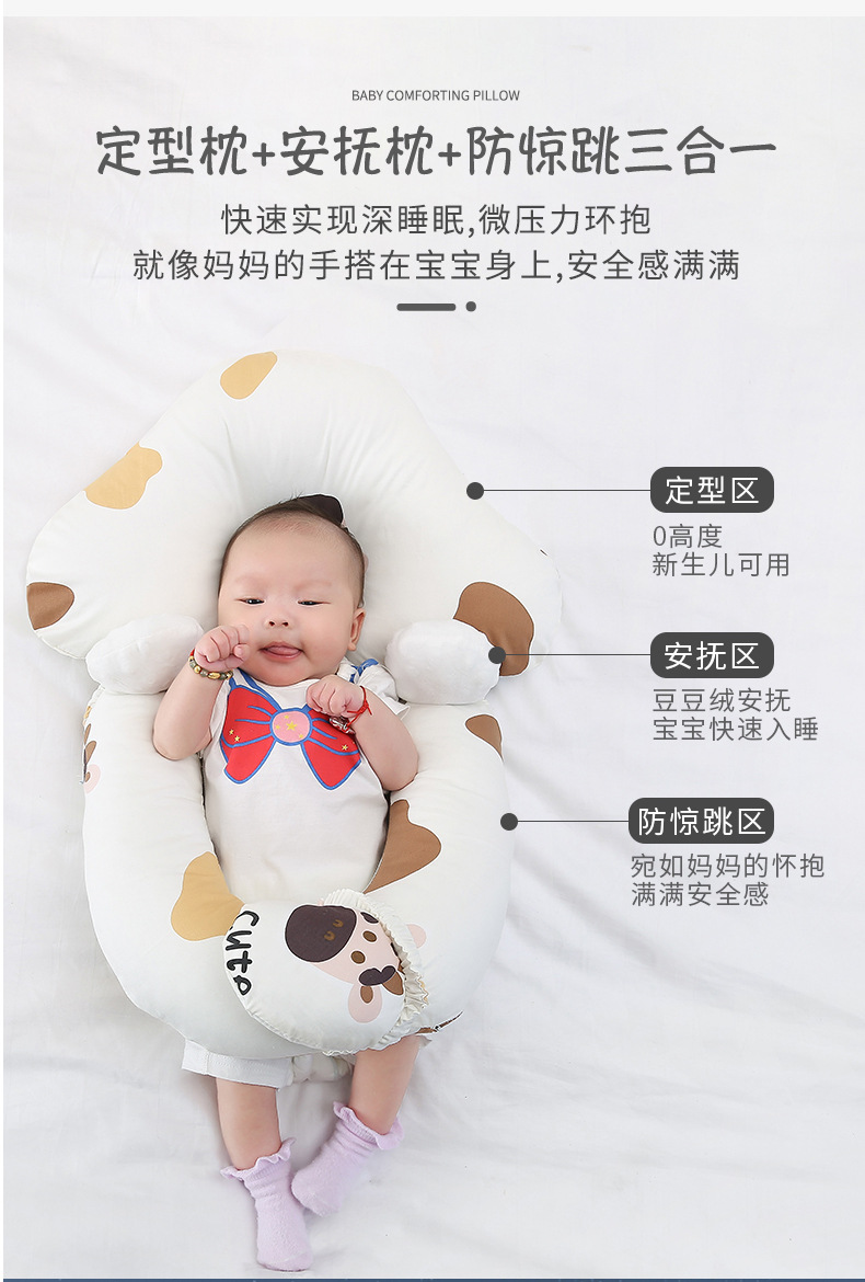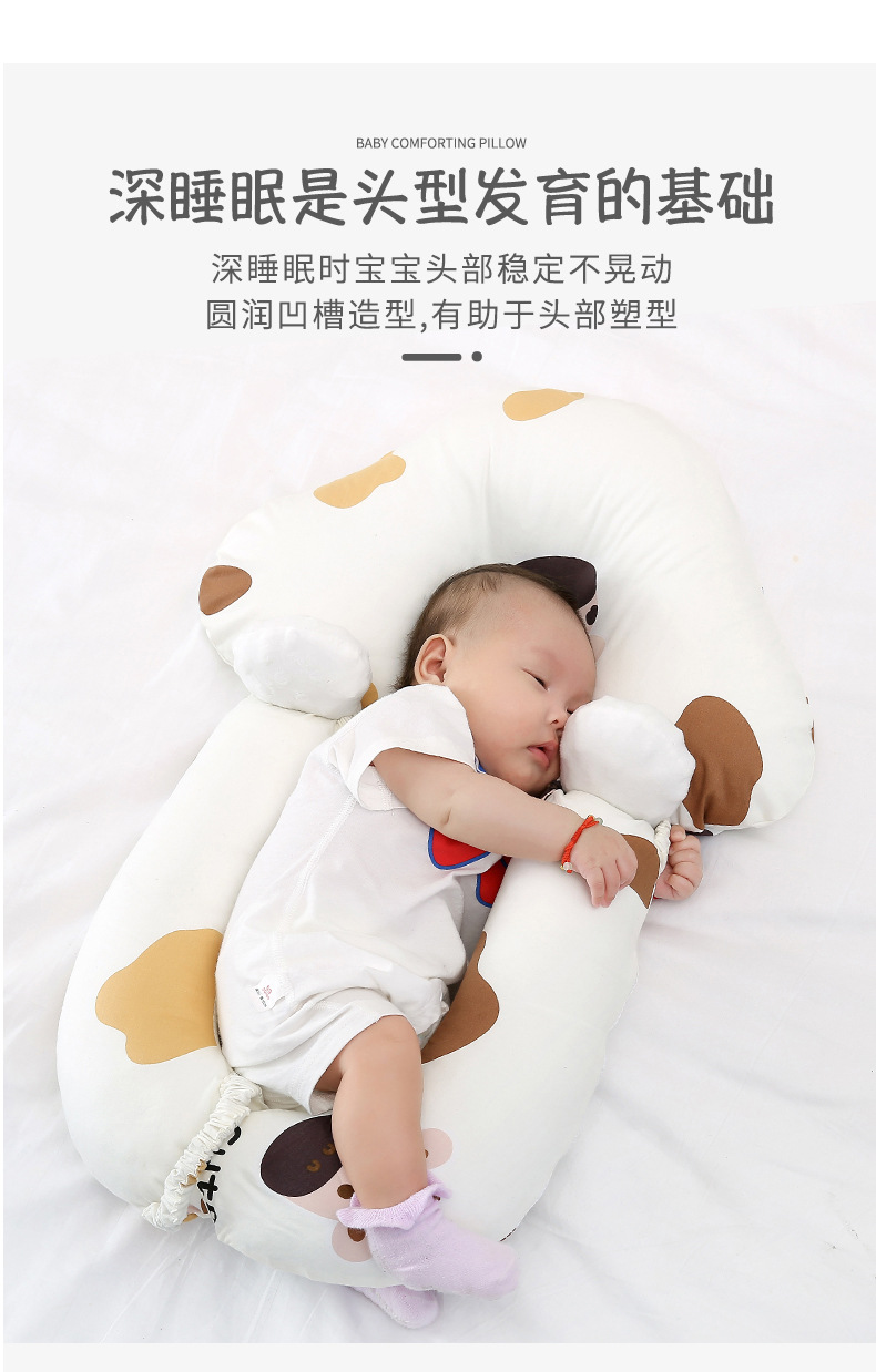 【双面呵护 快速深眠不惊跳 无惧机洗手洗】新生婴儿定型枕纯棉印花奶牛防惊跳安抚枕宝宝纠正偏头搂睡觉抱枕