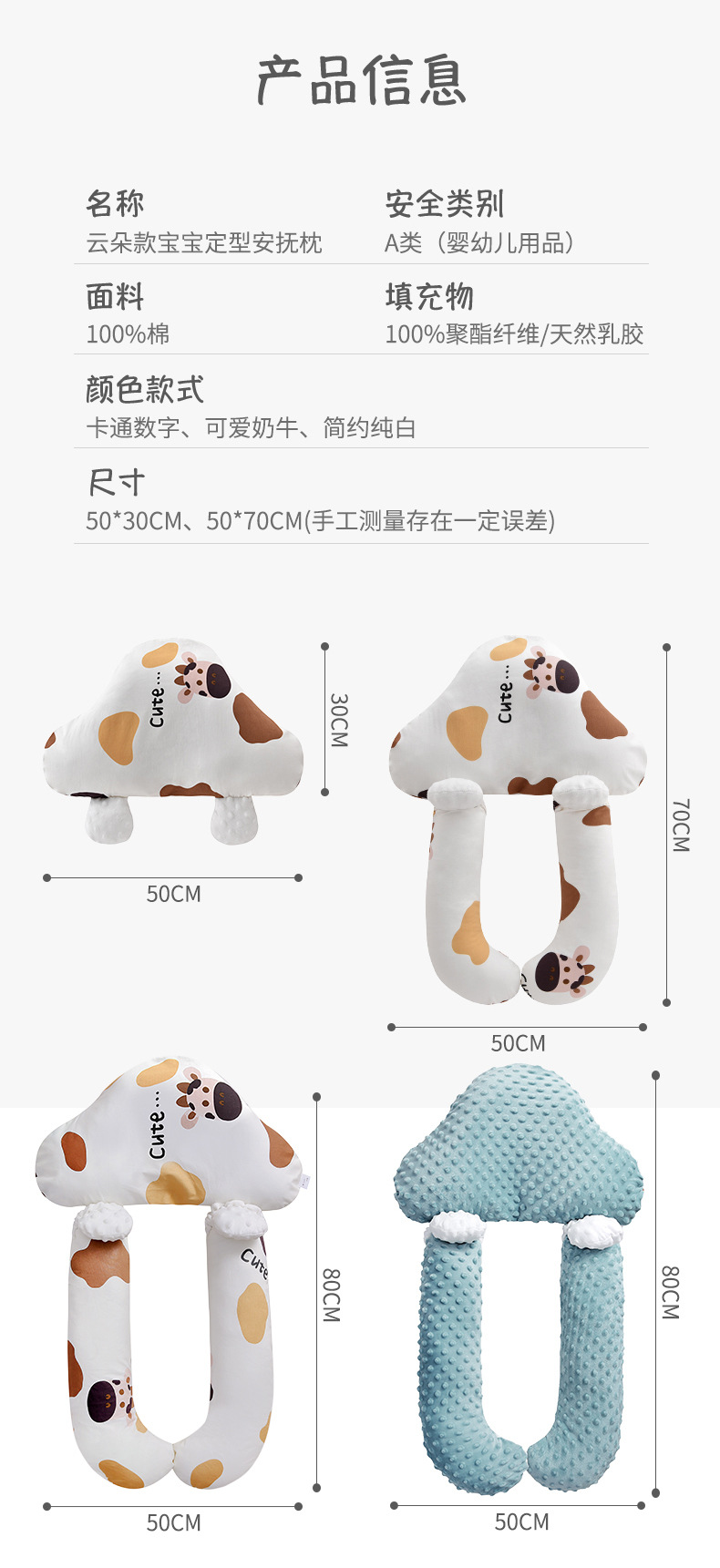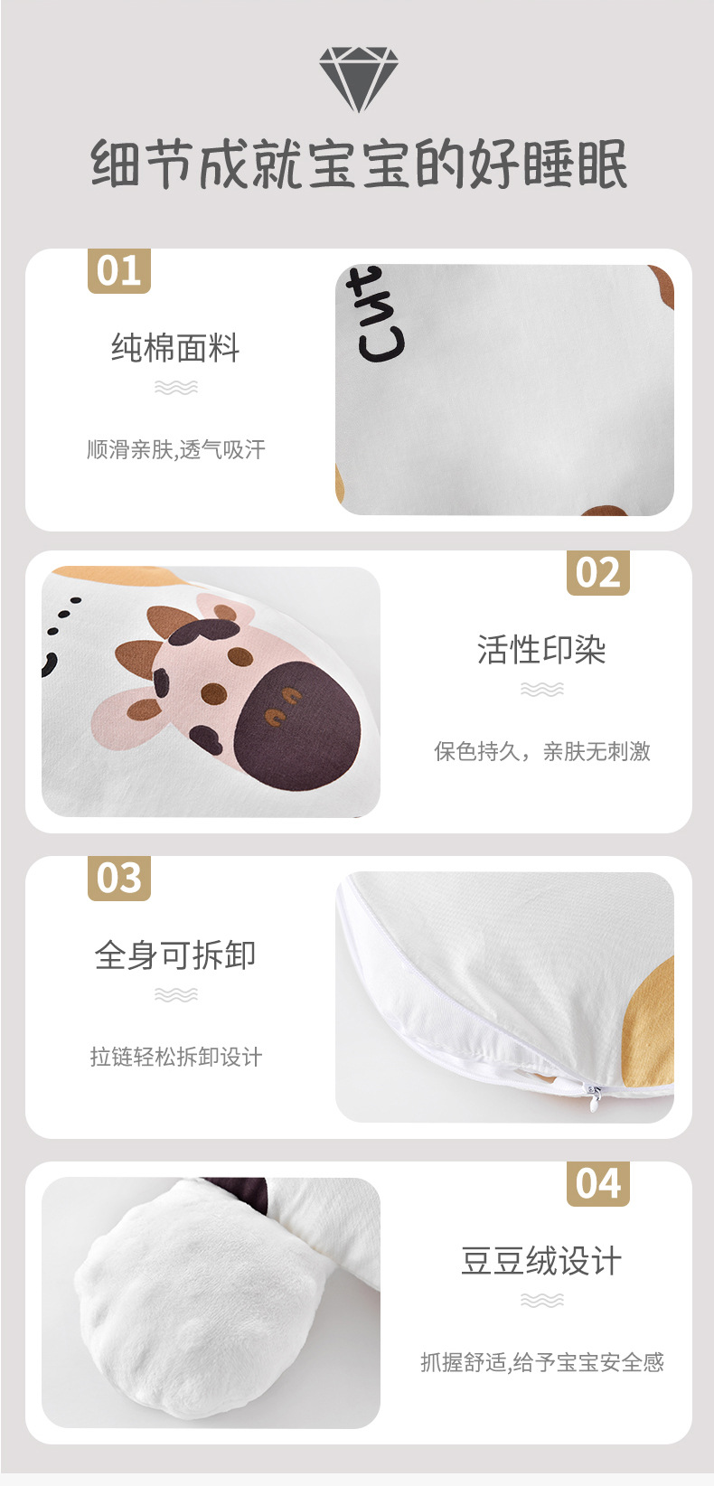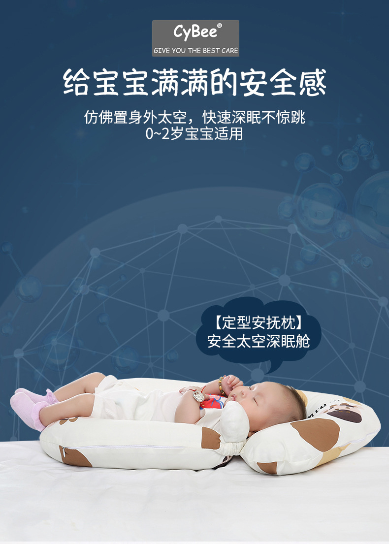 【双面呵护 快速深眠不惊跳 无惧机洗手洗】新生婴儿定型枕纯棉印花奶牛防惊跳安抚枕宝宝纠正偏头搂睡觉抱枕