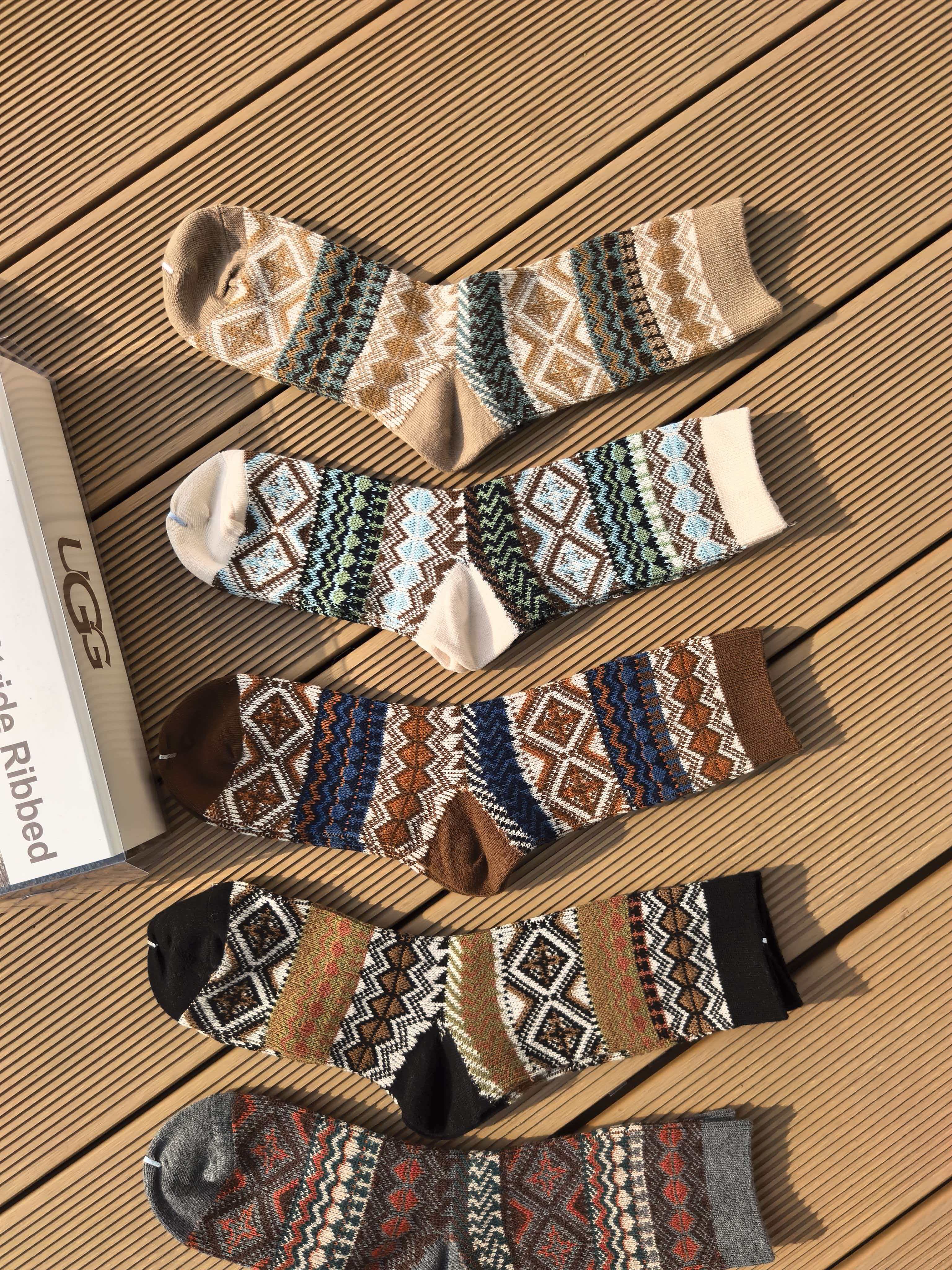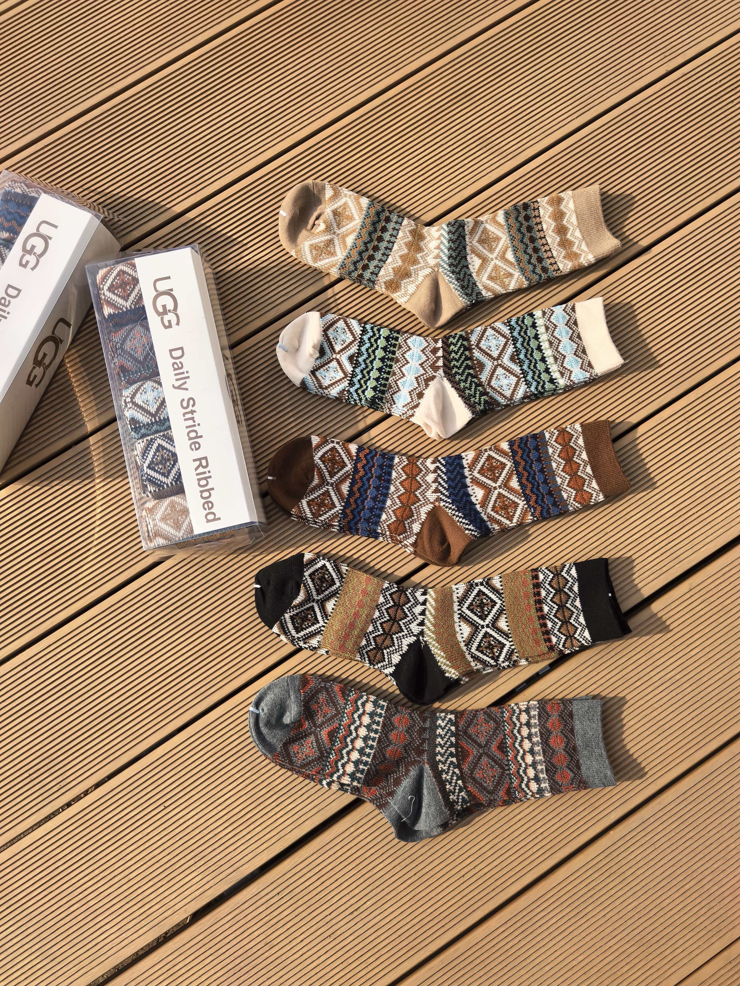 .一盒5双。原盒! 秋冬UGG民族风长筒袜 男女同款 秋冬复古款,男女同款,尺码35-42码