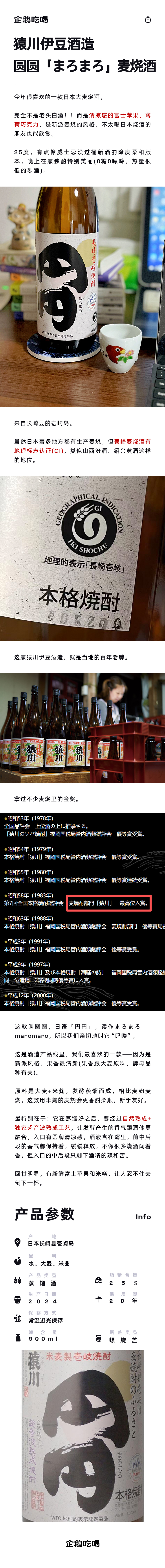 企鹅市集|长崎县猿川伊豆酒造 圆圆 金奖麦烧酒 富士苹果薄荷巧克力 “吗喽maro”烧酒 独家熟成工艺