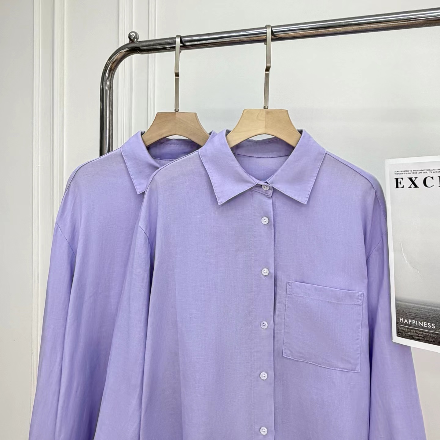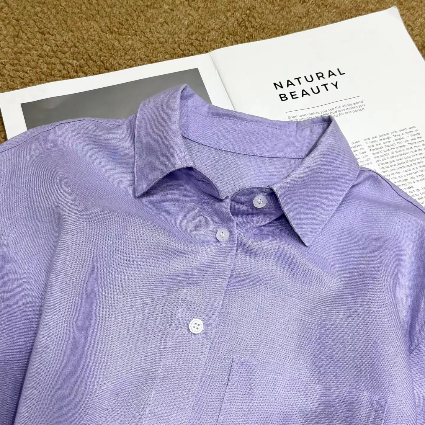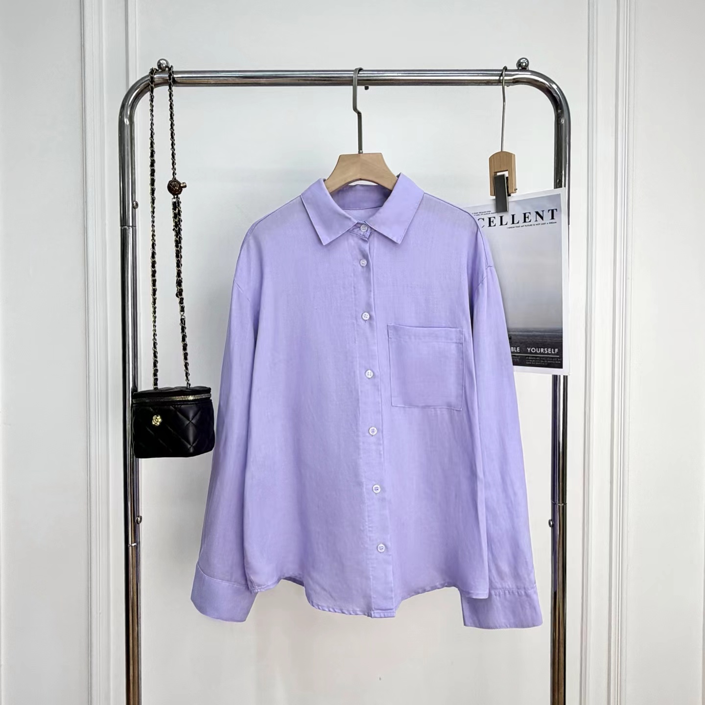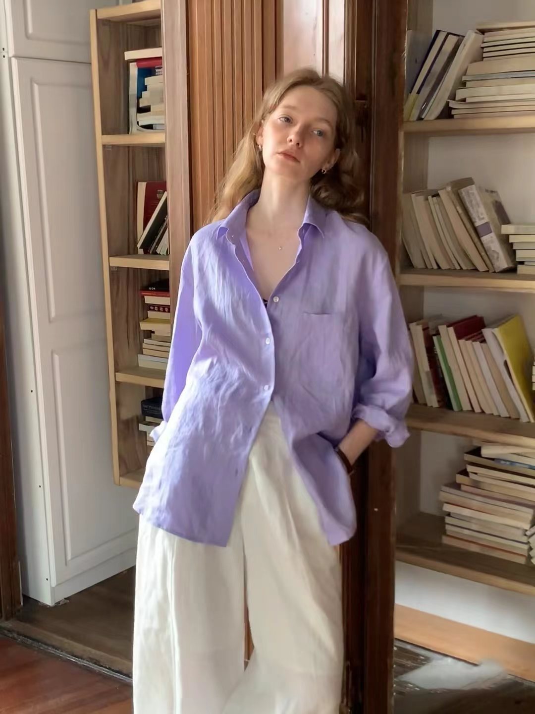 2026早春新款天丝亚麻香芋烟熏紫色长袖衬衫,烟熏紫-衬衫!春夏想出一款清爽一点的衬衫,挑了很久,才选上这款紫色的天丝亚麻料衬衫。它不像鲜艳的紫那么刺眼,比较柔和舒适,确实在市面上很少见,日常更不易撞衫~宽松的廓形,在春夏更显轻盈舒适,剪裁利落线条流畅平整有型,为身体留有松弛的空间。翻领+落肩袖设计轻松穿出“纸片人”既视感,慵懒气质轻松拿捏,展现颈部线条和气质,也能展现干练和自信。门襟做撞色扣子,紫配白色纽扣,看起来会更加显得清爽一些;胸前单侧做口袋设计,增添设计感。袖子长至手腕,显得整洁利落,底摆圆弧设计,线条流畅平整有型,为身体留有适当的空间,细节处增加质感!买过亚麻的姐妹应该都了解亚麻材质,就是自然又舒适,仔细看还带有一些麻结。唯yi缺点就是洗后会发硬,但是我们做的加入了天丝,中和了亚麻发硬的缺点,整体就是挺括造型的同时更加舒适稳固耐穿~