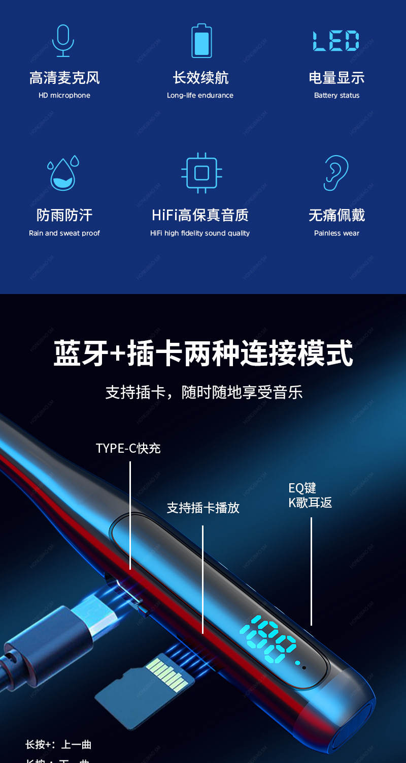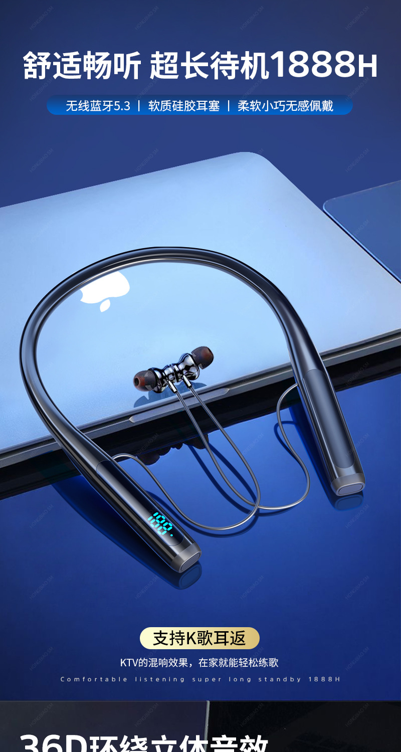 新款私模入耳式运动蓝牙耳机挂脖双超长待机续航超长续航升级