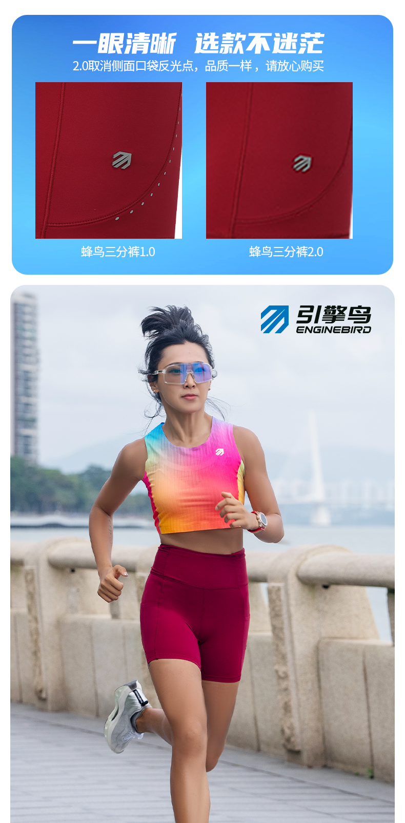 引擎鸟女款蜂鸟紧身三分裤系列竞速马拉松运动短裤