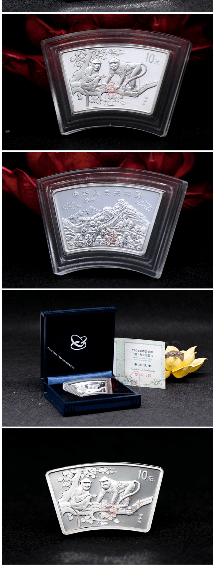 河南中钱 中国金币 2004年猴年扇形银币 1盎司纪念币生肖币