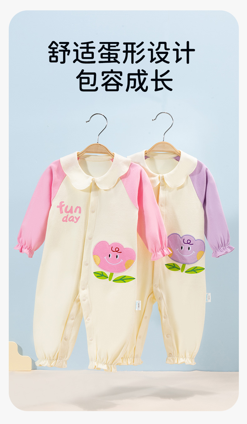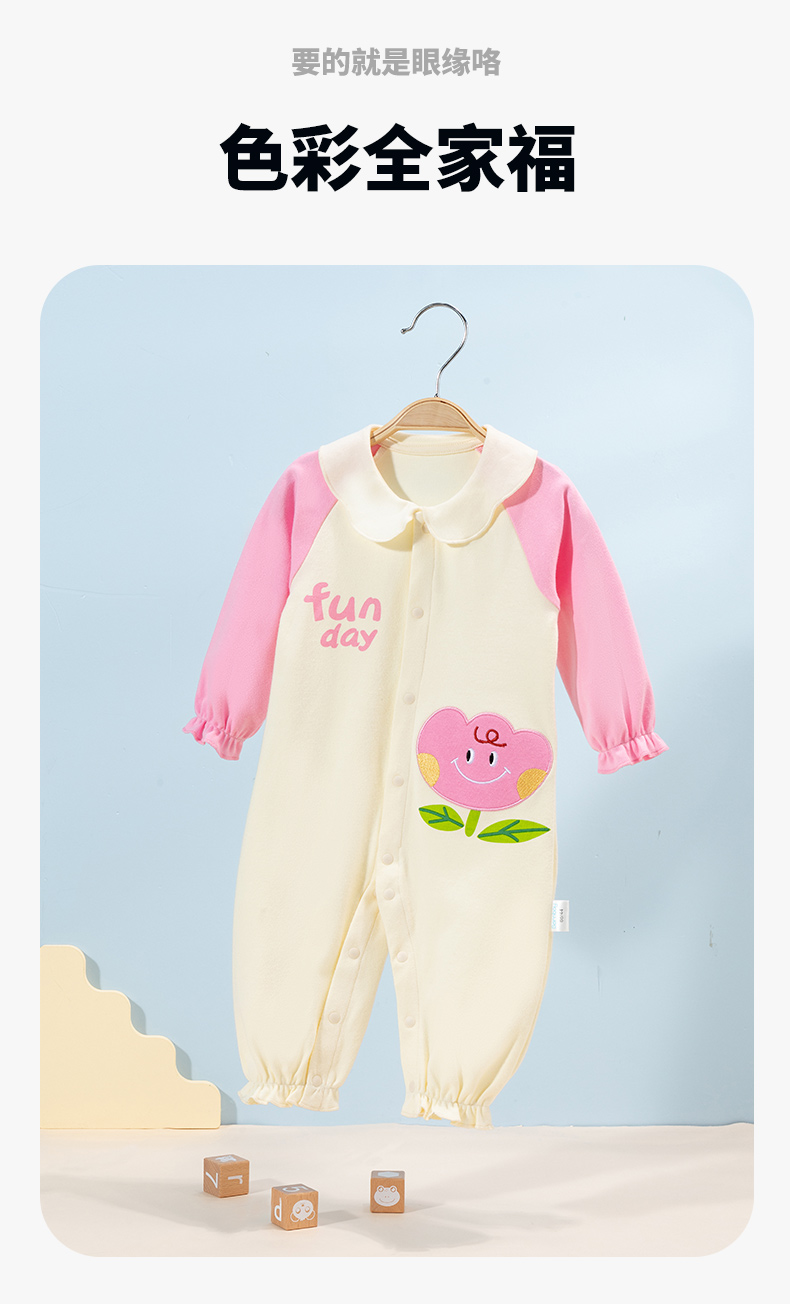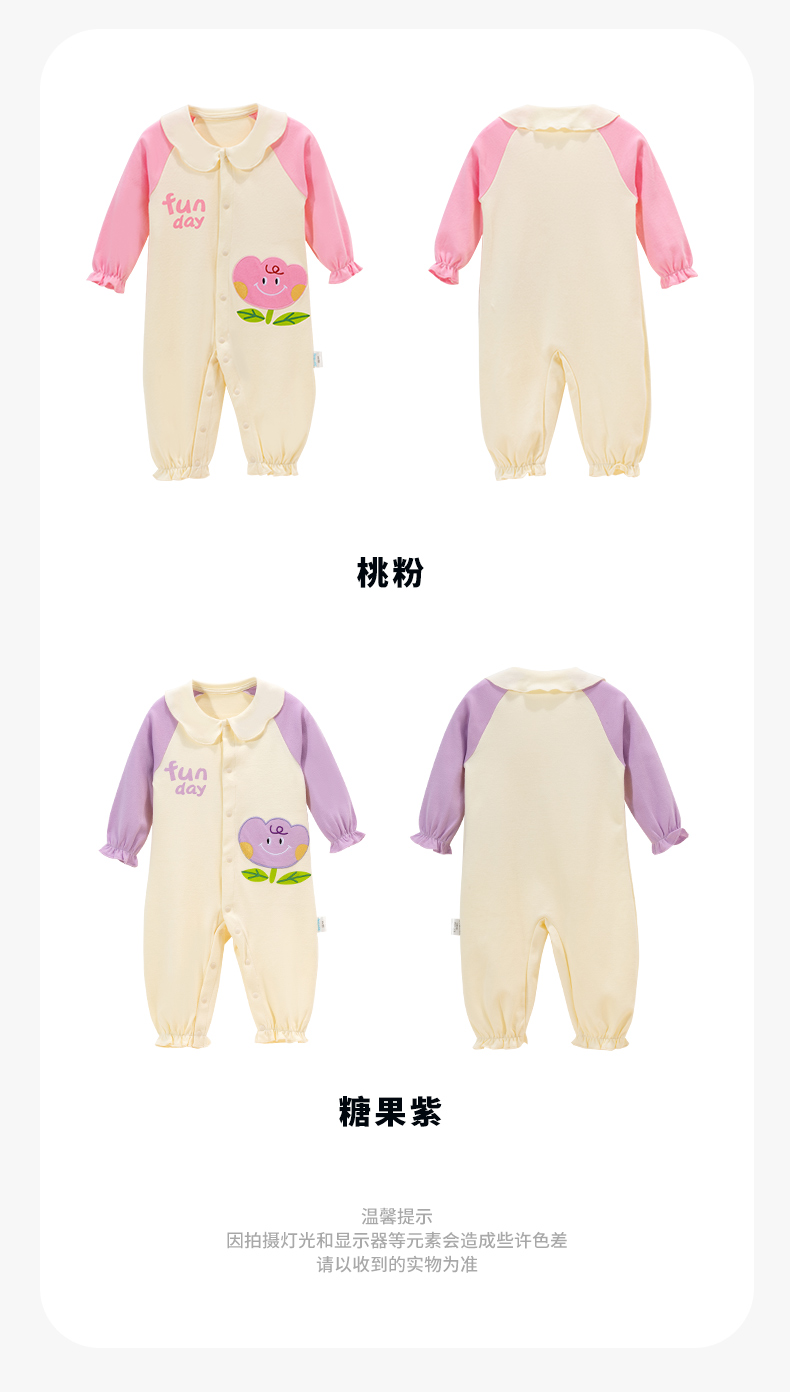 贝贝怡【娃娃领】婴幼连体衣春秋新款女童纯棉哈衣女宝宝亲肤透气爬爬服ZB3DL023