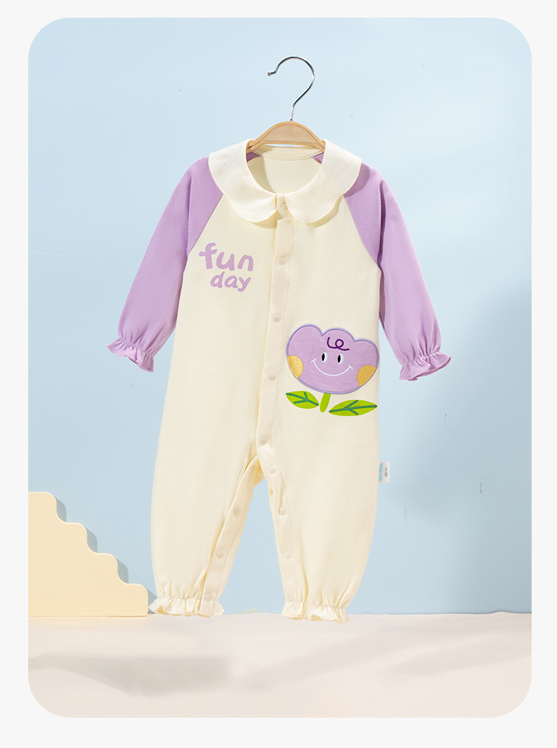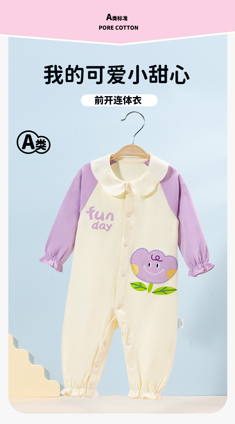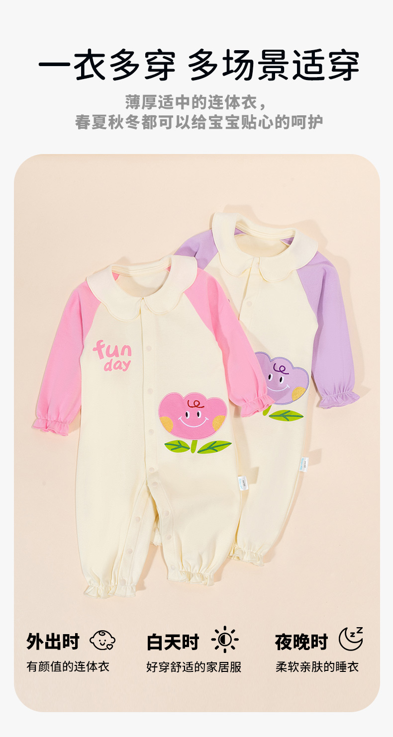 贝贝怡【娃娃领】婴幼连体衣春秋新款女童纯棉哈衣女宝宝亲肤透气爬爬服ZB3DL023