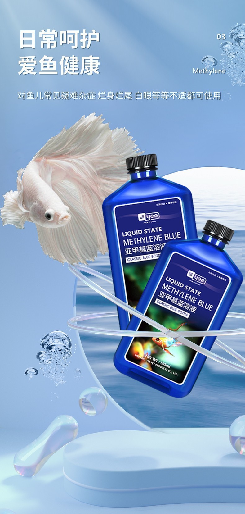严选yee亚甲基蓝水族鱼专用鱼药疾病治疗观赏鱼烂身烂尾鱼缸杀菌液235ml