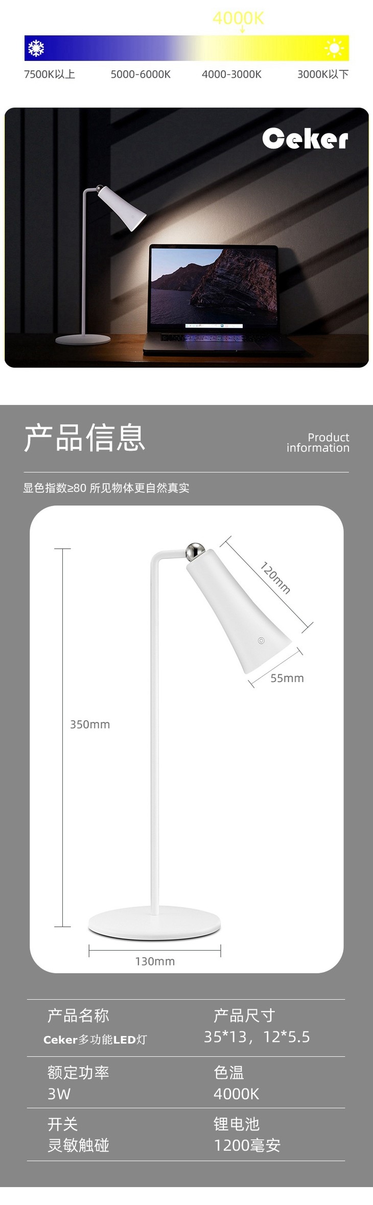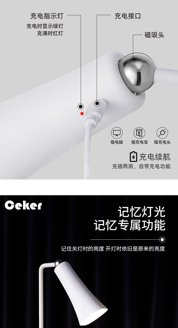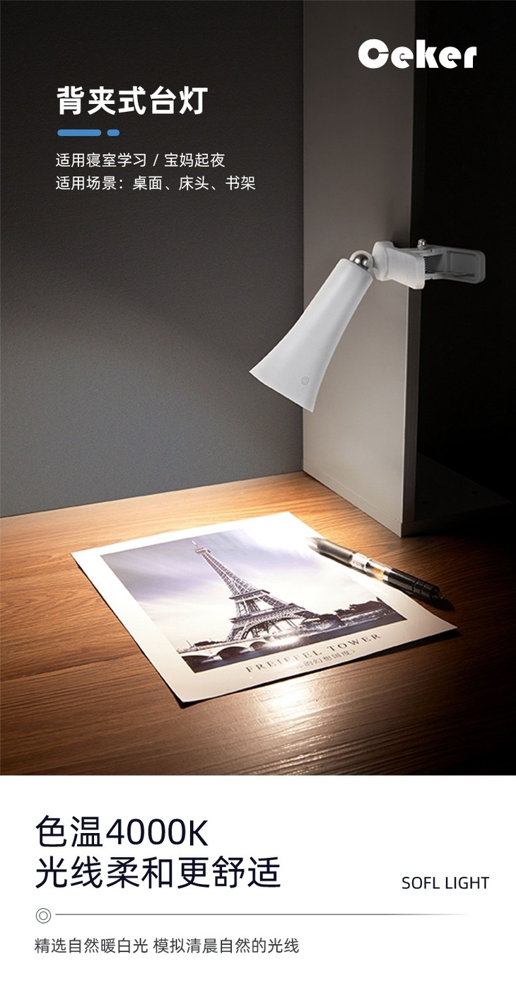 【台灯+壁灯+夹子灯 180°灵活调节】ceker百变台灯 记忆灯光 光线柔和 大光面照射