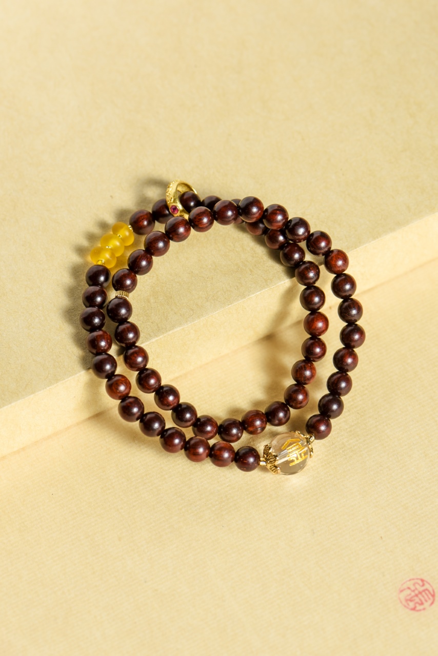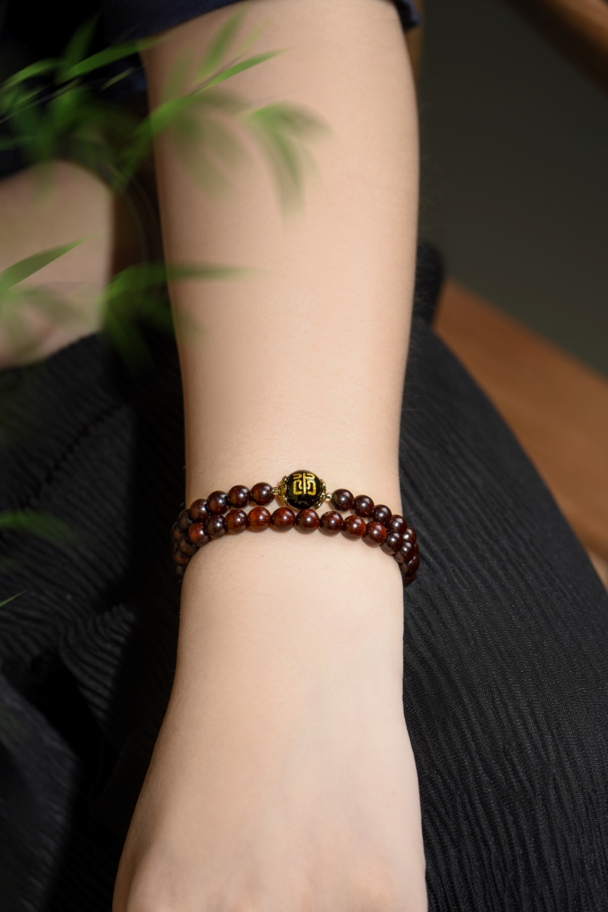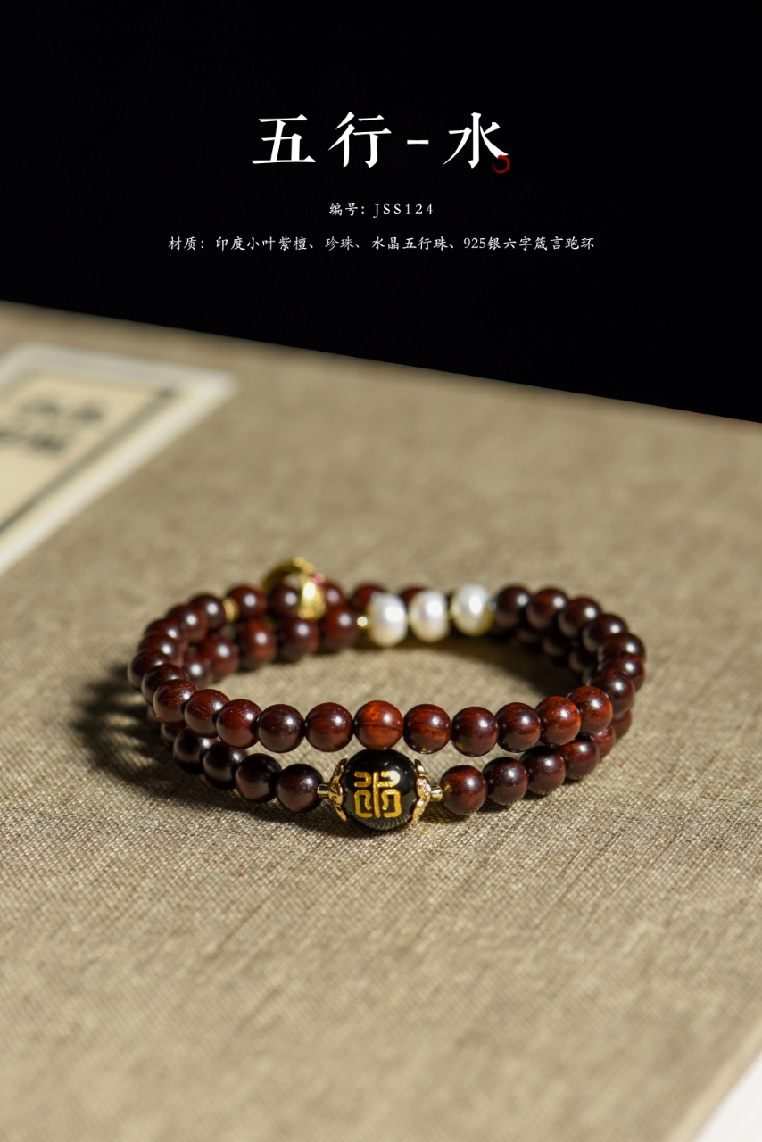 小叶紫檀五行手串,古朴典雅