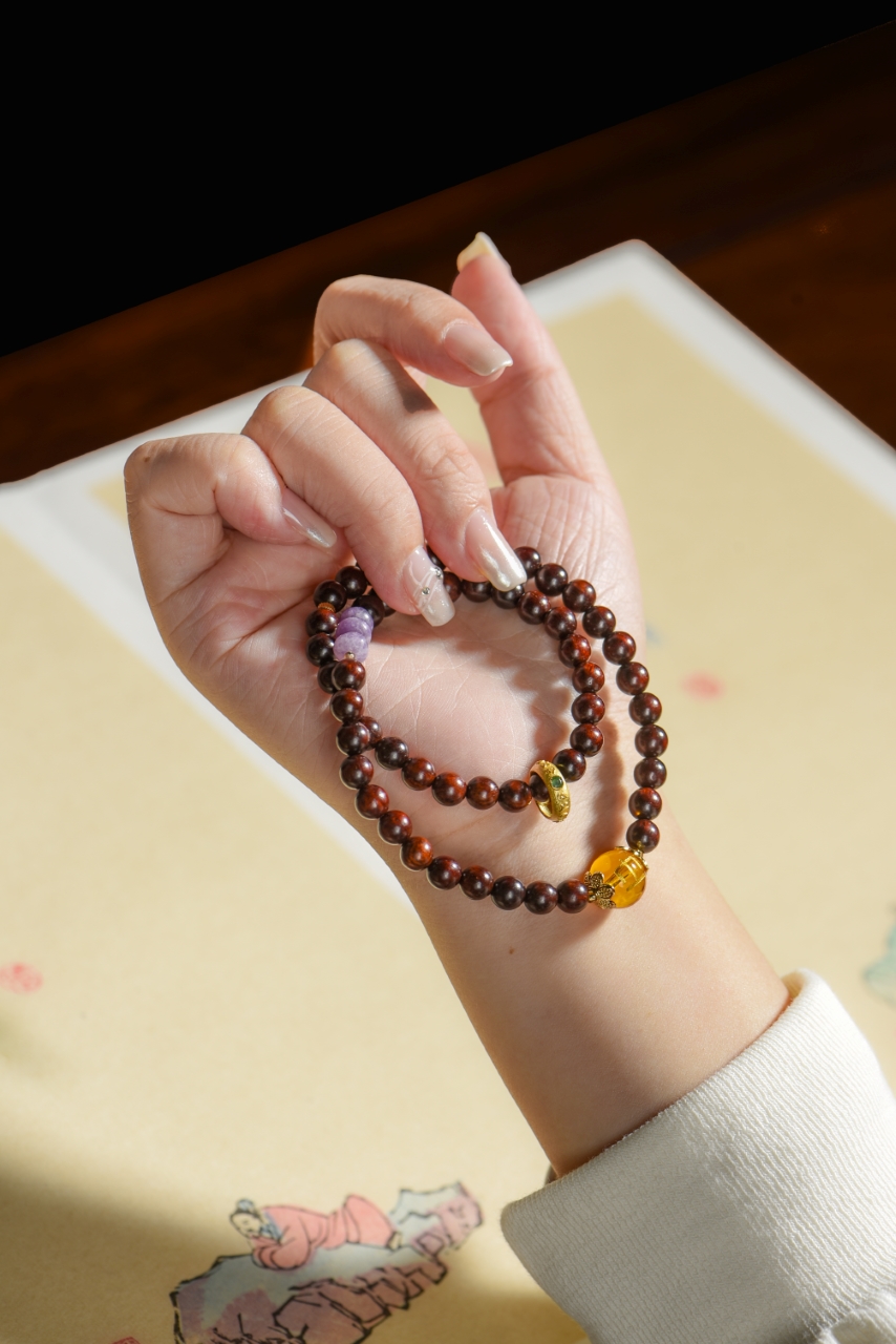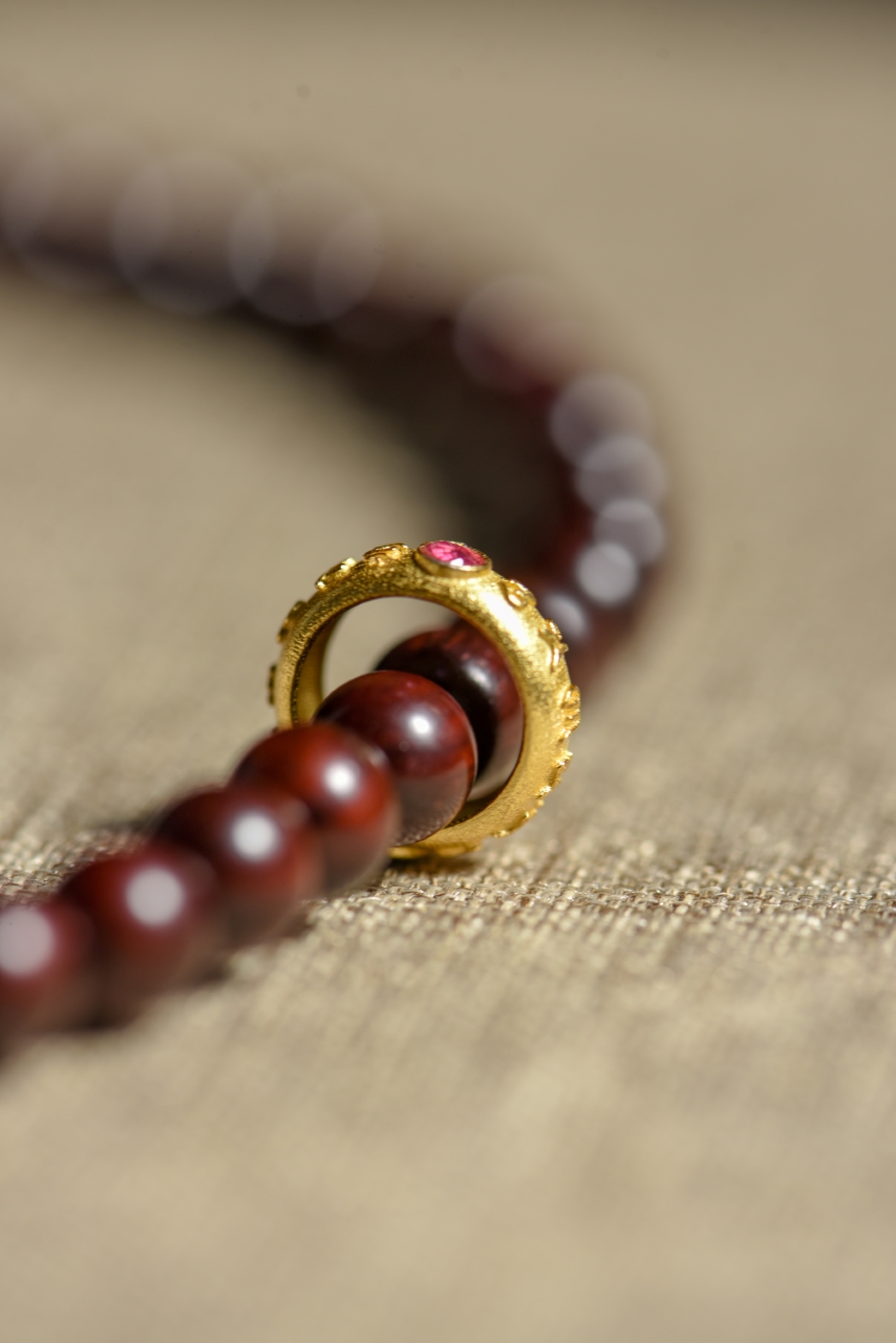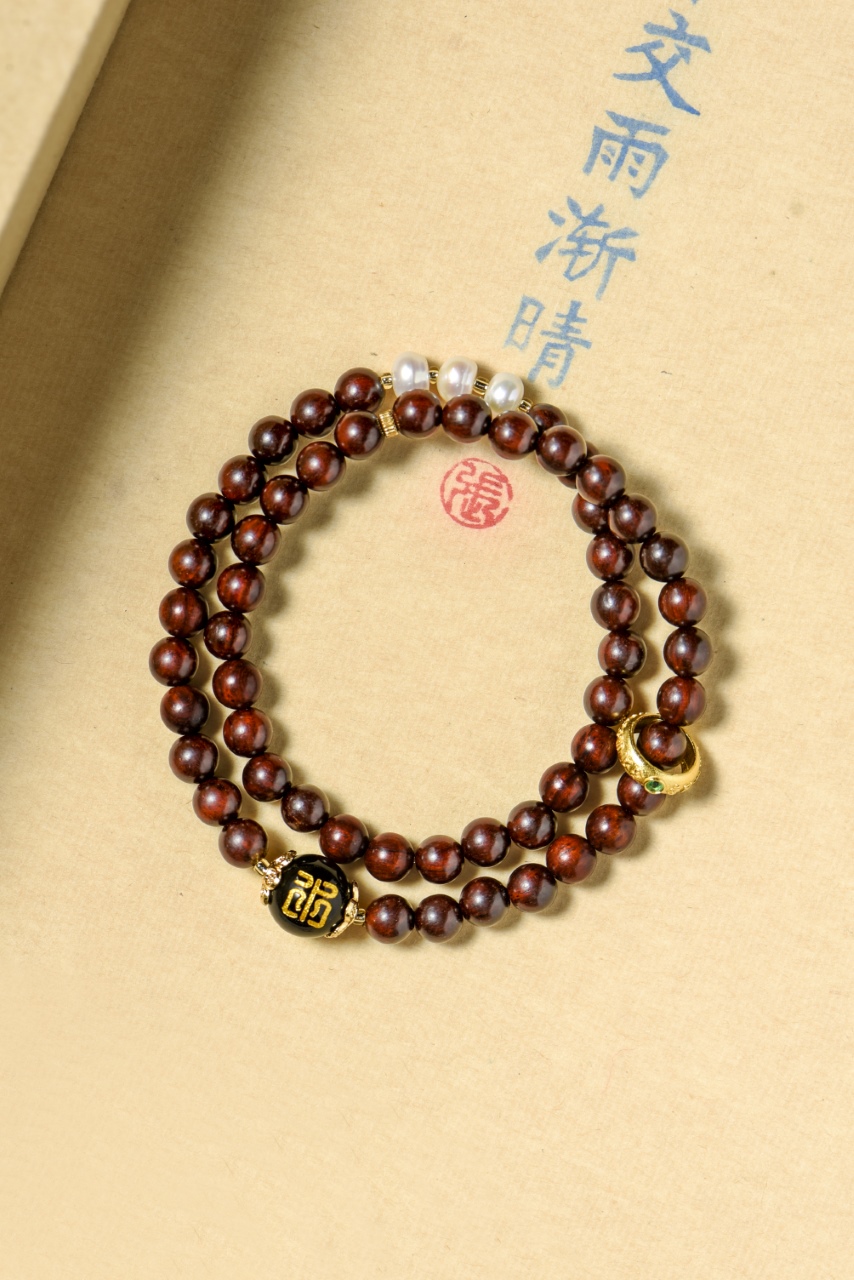 小叶紫檀五行手串,古朴典雅