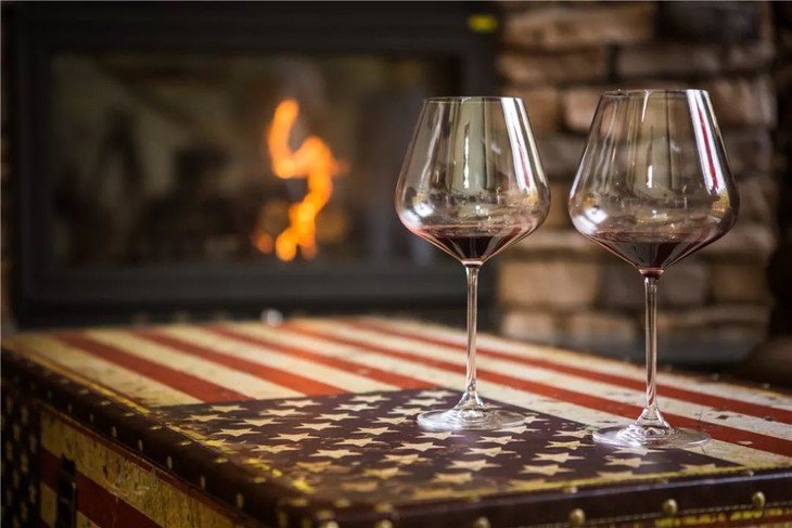 一楼欧式壁炉客厅,配有室外移动厨房、山景浴室