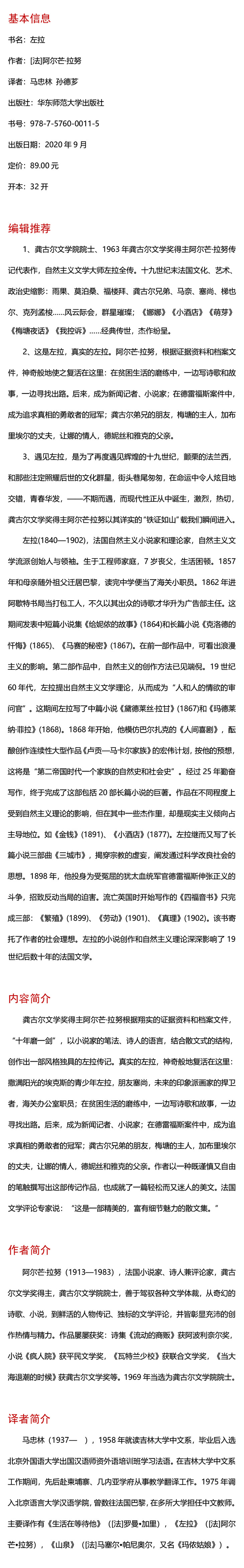 左拉 龚古尔文学院院士 1963年龚古尔文学奖获得者阿尔芒 拉努著 国内系统 完整 专业的左拉全传