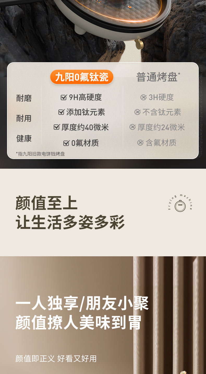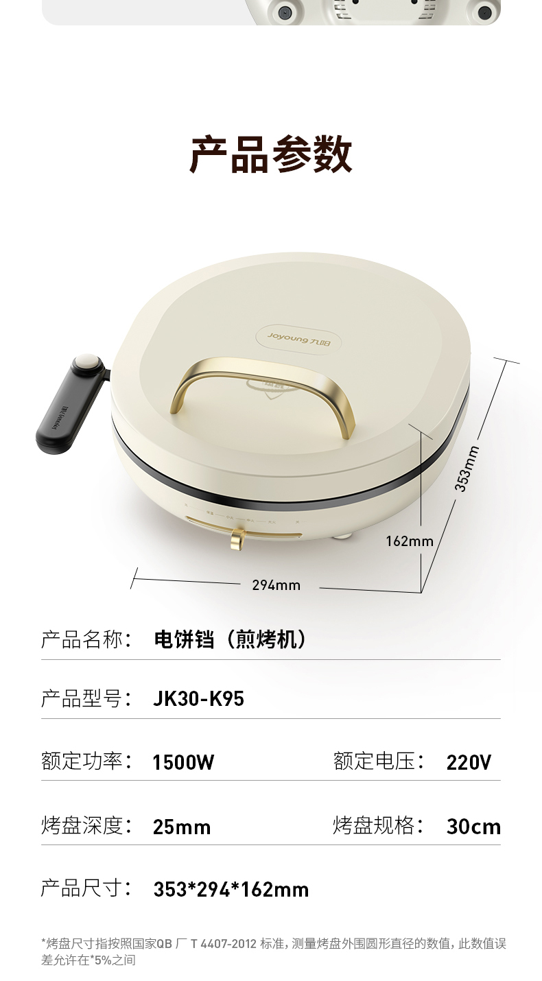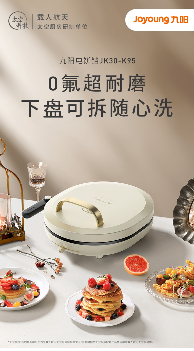 九阳电饼铛0氟钛瓷双面加热下盘可拆洗煎烤机家用烙饼早餐薄饼机