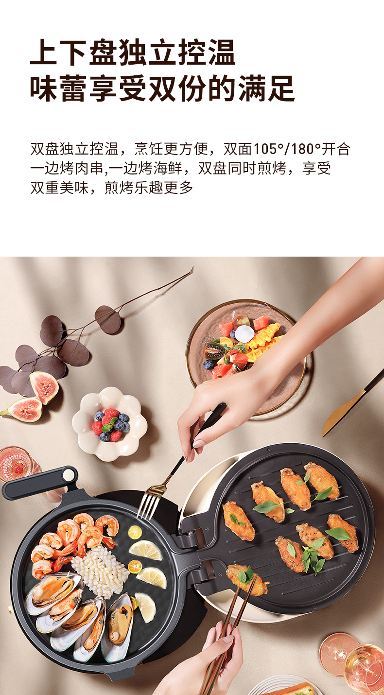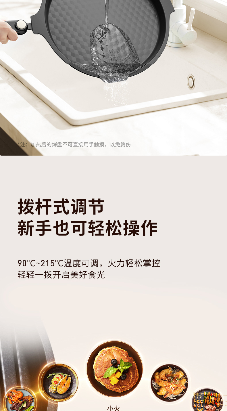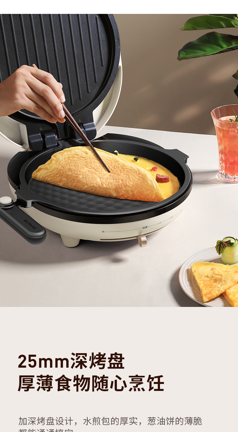 九阳电饼铛0氟钛瓷双面加热下盘可拆洗煎烤机家用烙饼早餐薄饼机