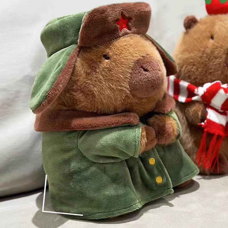 东北军大衣卡皮巴拉公仔玩偶卡皮吧啦花棉袄