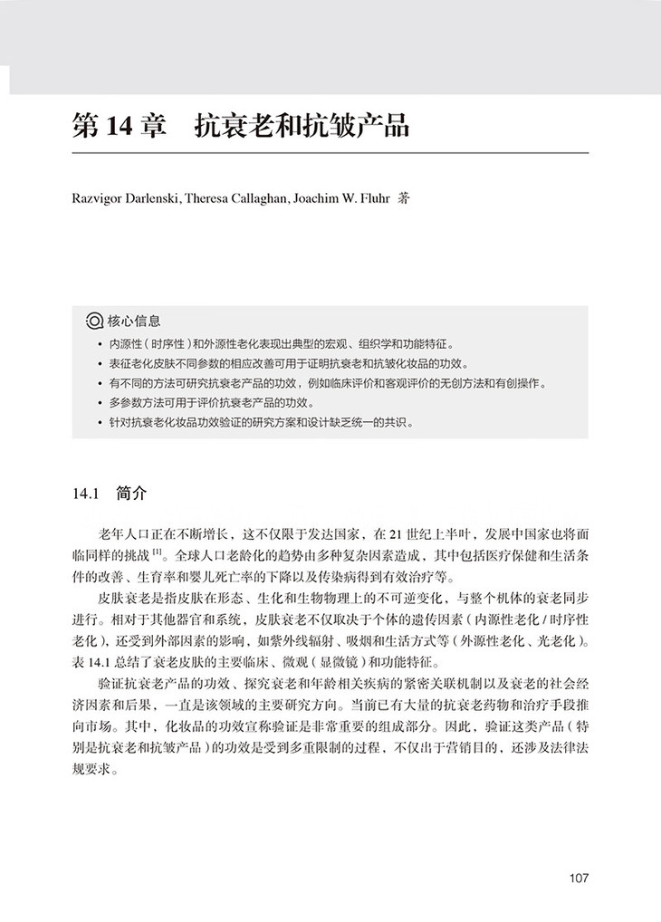 本书提供了一份关于如何使用无创性生物物理仪器评价皮肤功能和功效临床评价的实用指导。它凝结了全球领先专家的智慧和经验,详细介绍了如何规划、执行和评价皮肤生理学临床功效评价研究,包括测量皮肤表观生理指标。本书不仅为初入这一领域的专业人员提供了简明的信息,还使读者能够紧跟最新的皮肤生理学临床功效评价研究进展,为其在化妆品市场中的创新提供坚实的基础。本书适用于化妆品研发和功效检测技术人员、皮肤科、美容外科从业人员等。