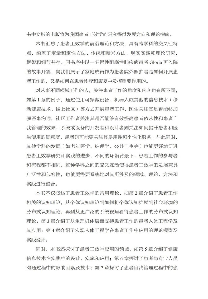 《精益诊疗:运用患者工效学提高就医满意度》还回顾了患者工效学在信息技术使用、沟通、自我护理及患者安全等患者工作领域的具体应用,同时介绍了患者工效学的各种方法。著者旨在帮助更多人合理运用患者工效学研究,改善患者及其他非专业人士的健康相关活动,进而推动患者工效学领域的进步,切实提高患者就医满意度。