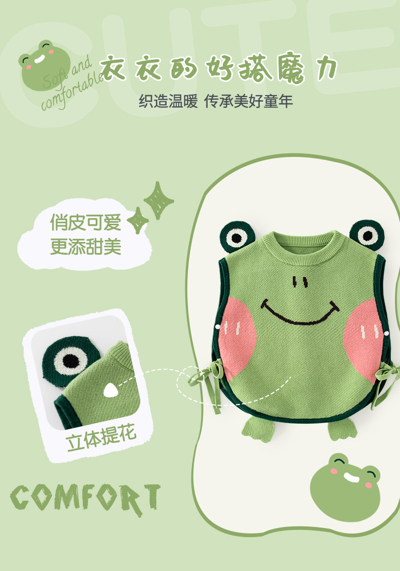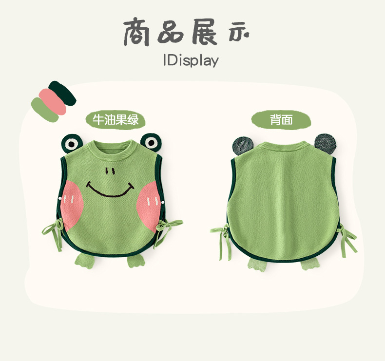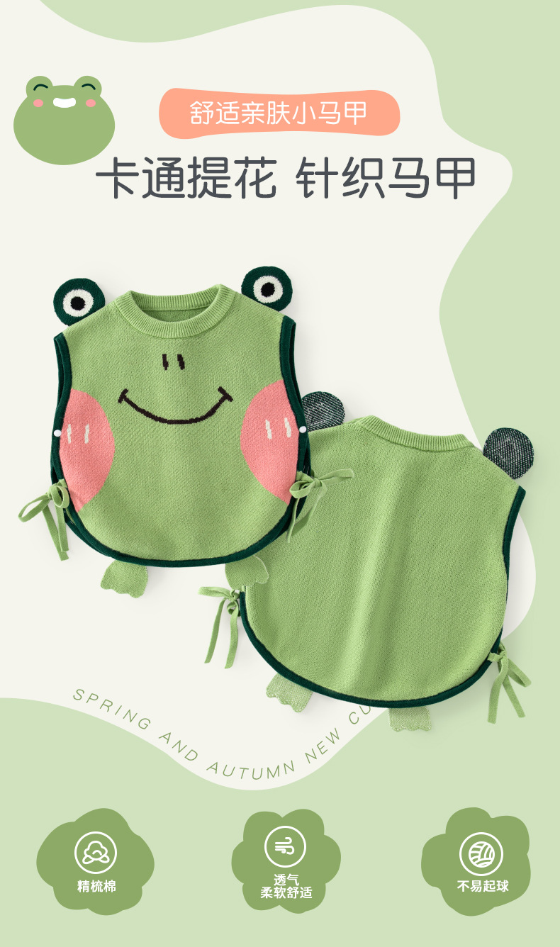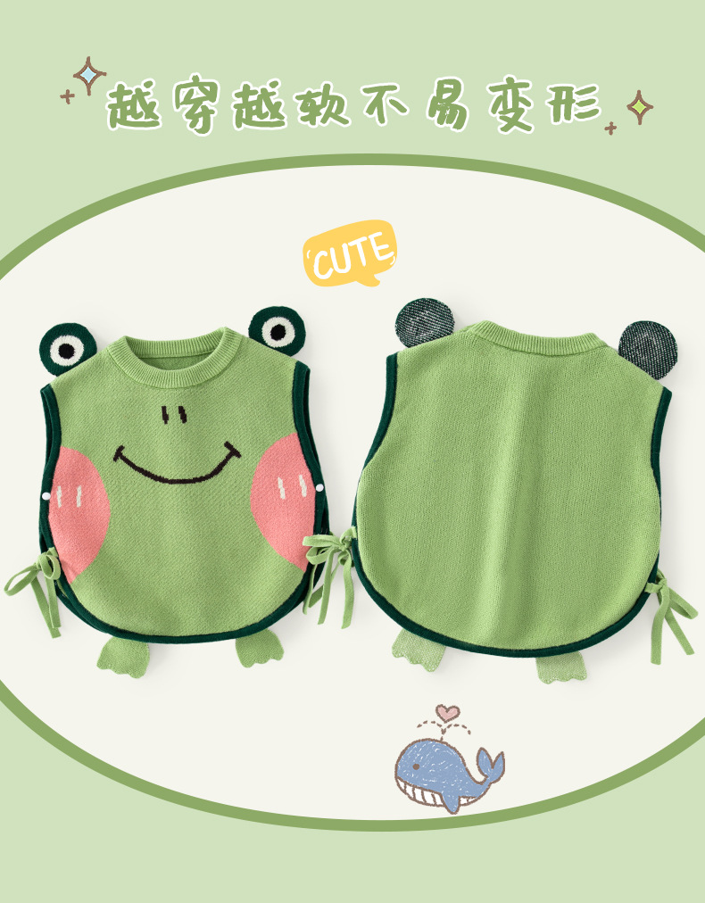巴布雨新款A类小青蛙婴儿马甲纯棉可爱针织儿童马甲秋冬宝宝马甲