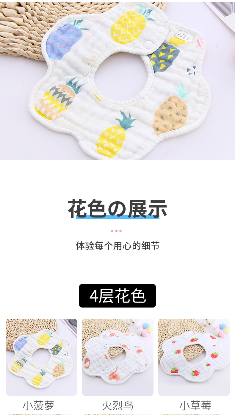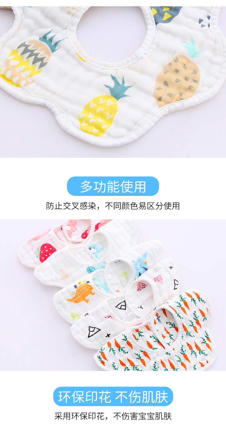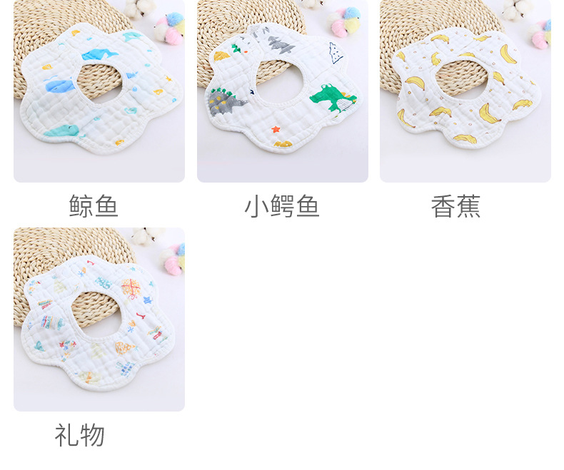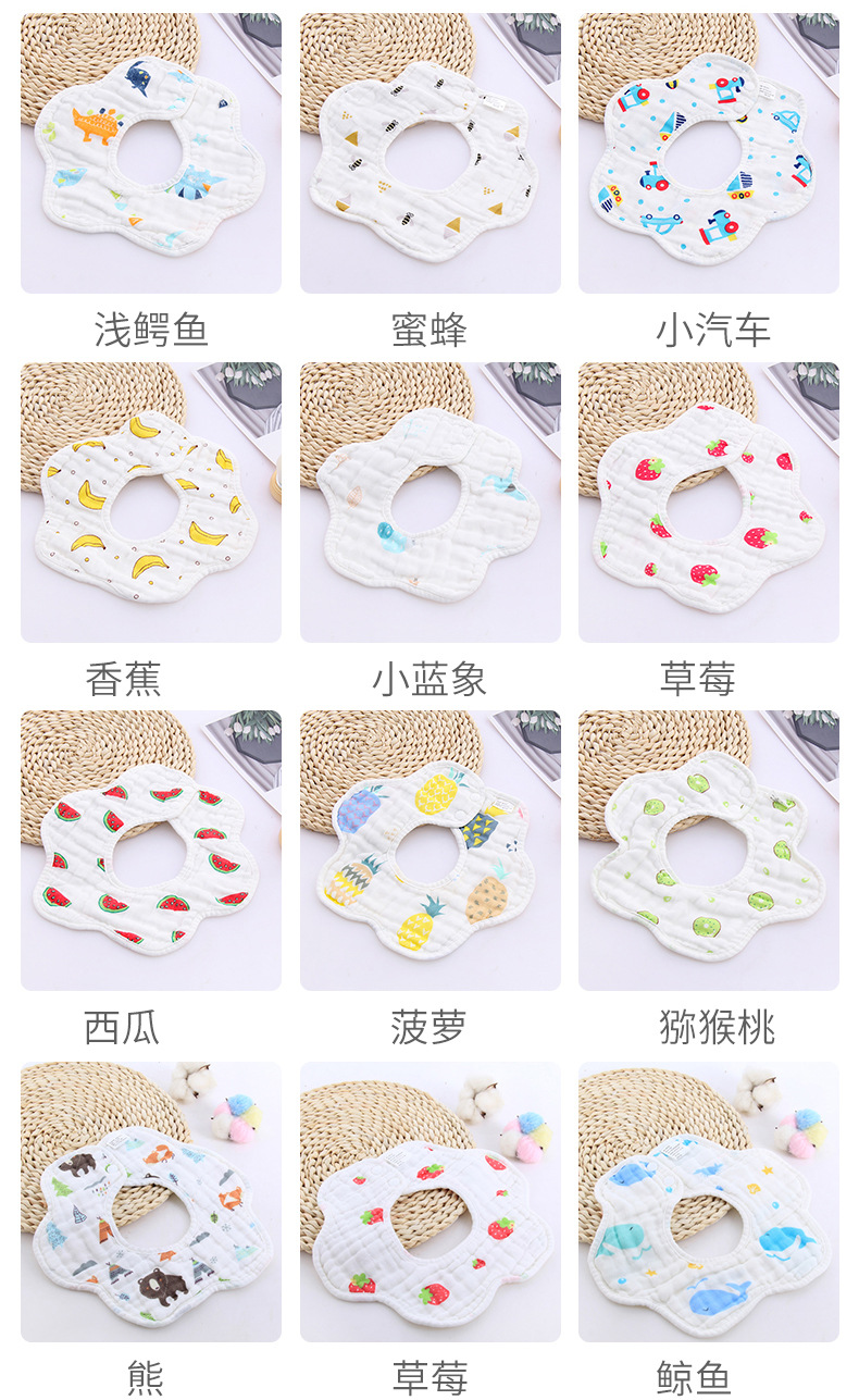 【3个装】婴儿全棉泡泡纱花瓣围嘴 八层纱布360度旋转口水巾宝宝围兜卡通印花围嘴