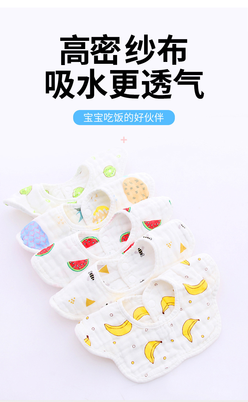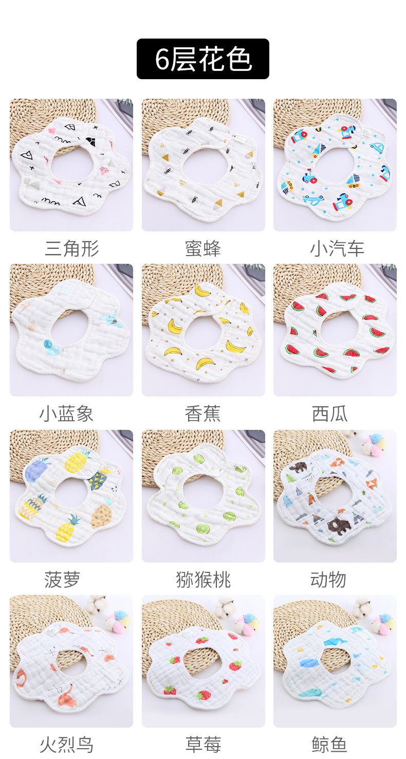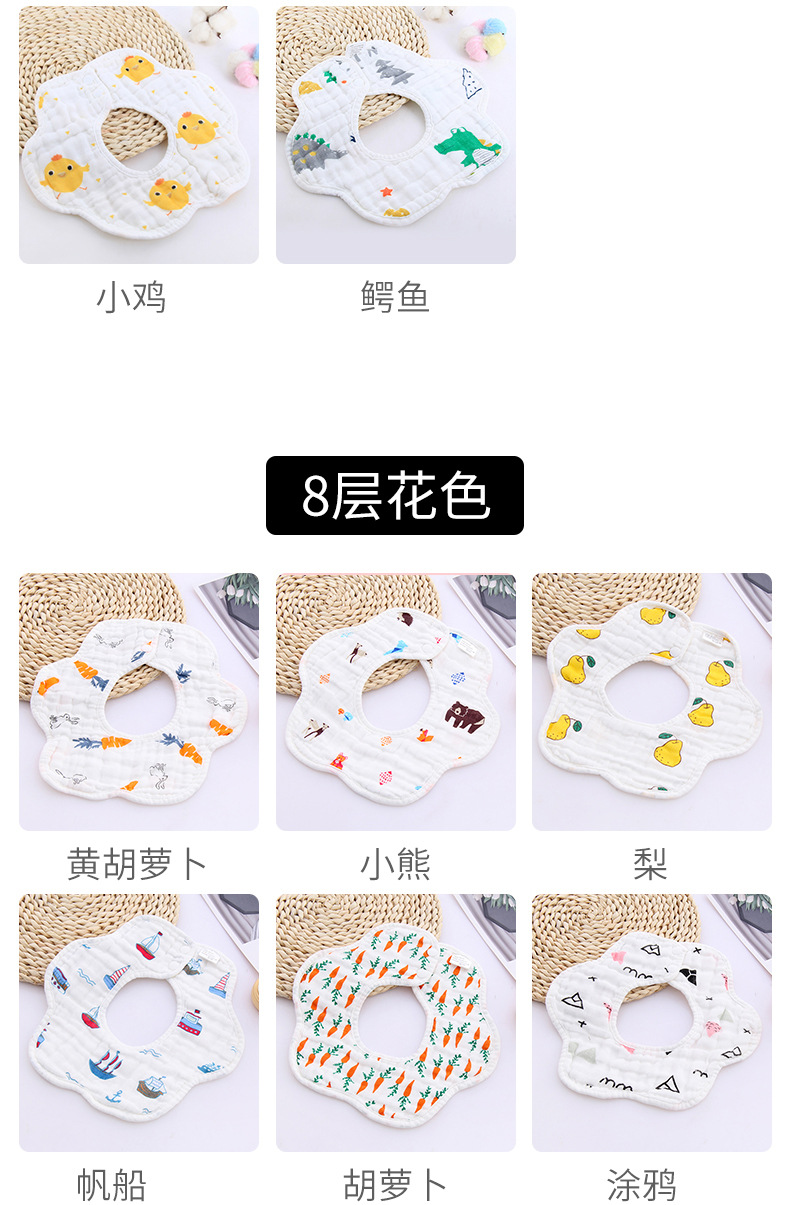 【3个装】婴儿全棉泡泡纱花瓣围嘴 八层纱布360度旋转口水巾宝宝围兜卡通印花围嘴