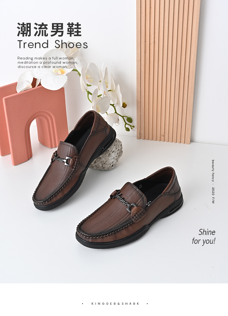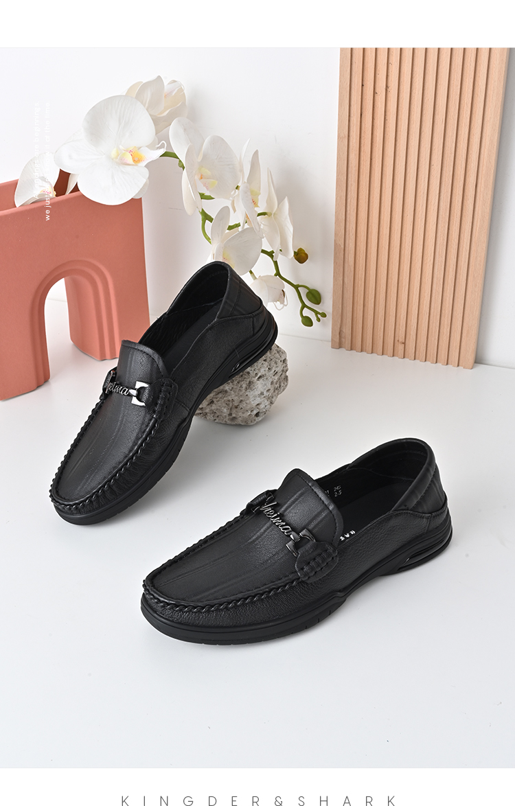 经典鲨2024年秋季新款男士一脚蹬平底休闲鞋正装商务皮鞋KW269-D33111