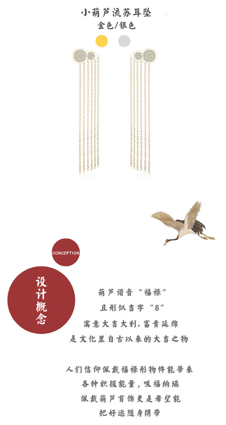 【宫里耳饰】 福禄小葫芦 流苏水钻耳坠