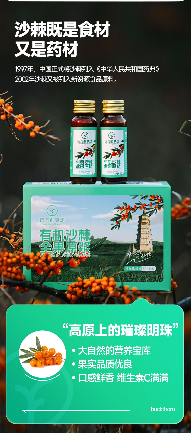 5组(10盒)减100元【内蒙原始主义沙棘原浆 有机原料/有机沙棘全果原浆 保留沙棘本真】补充所需维生素C
