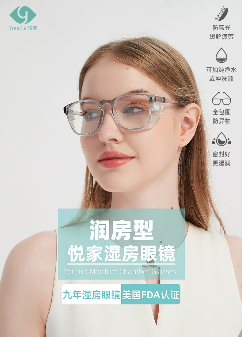 YourGa悦家湿房镜润房型YG-005防蓝光眼镜护目镜防花粉眼睛干涩缓解眼疲劳男女日系潮