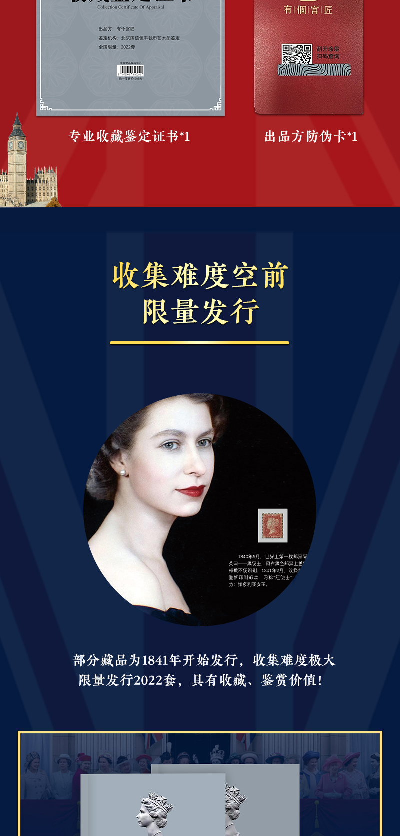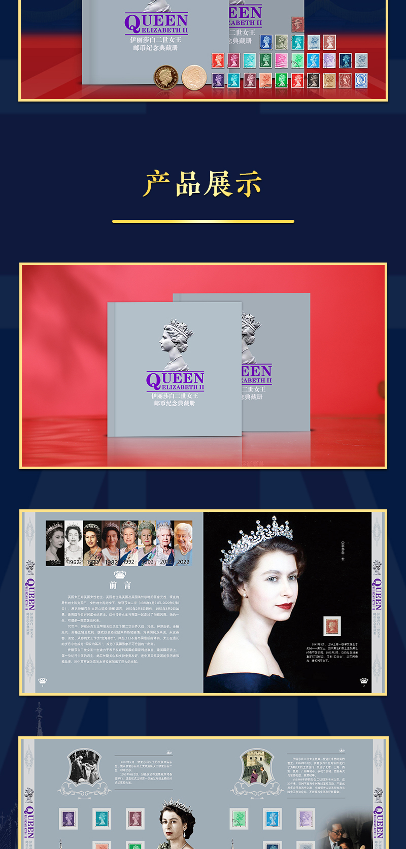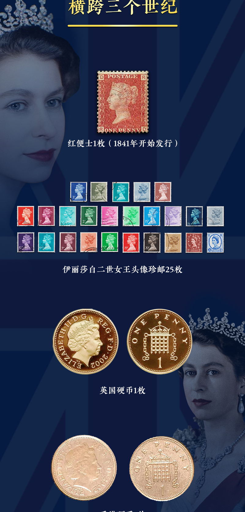 《伊丽莎白二世女王》邮币纪念典藏册 珍邮26枚、英国硬币1枚、香港硬币1枚