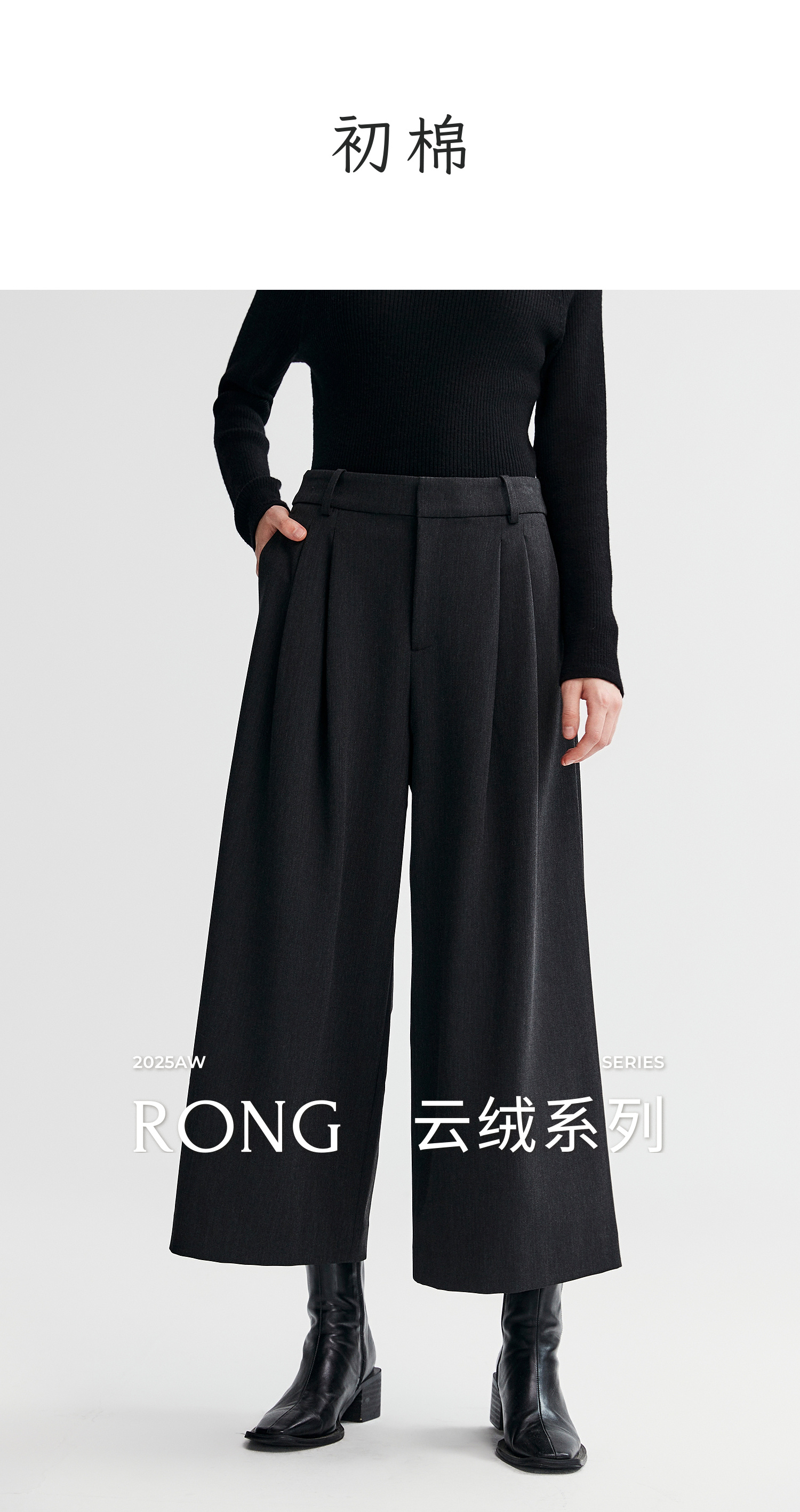 棉仓366618019-【绒系列】定制TR九分阔腿裤女25秋冬微磨毛A字宽松裙裤