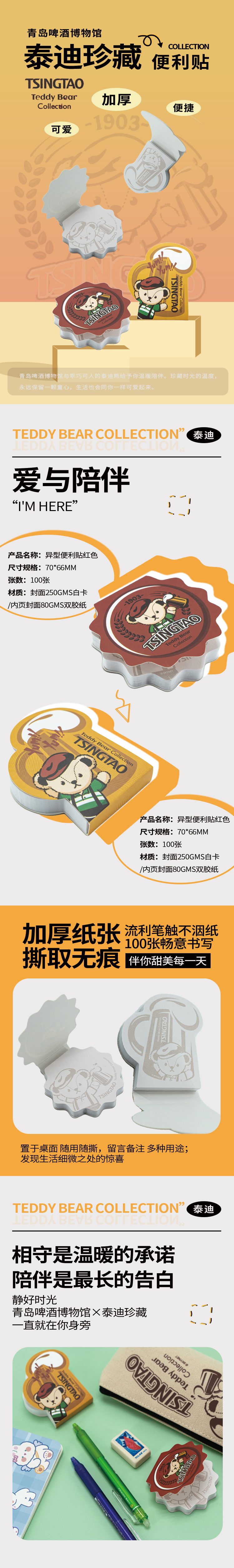 【青岛啤酒博物馆】泰迪珍藏便利贴 青岛啤酒 官方文创