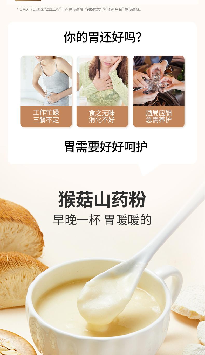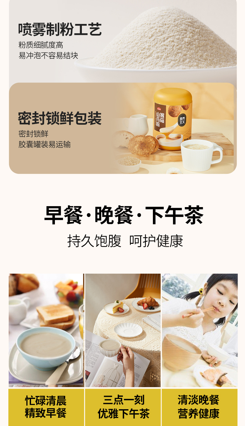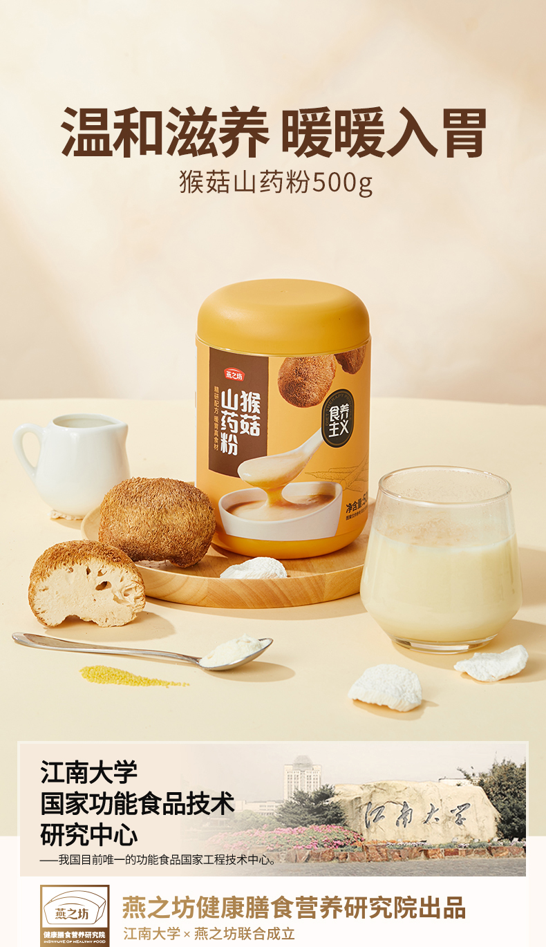 燕之坊猴菇山药粉500g 六大养胃食材 即食养胃冲泡米糊早餐代餐粉