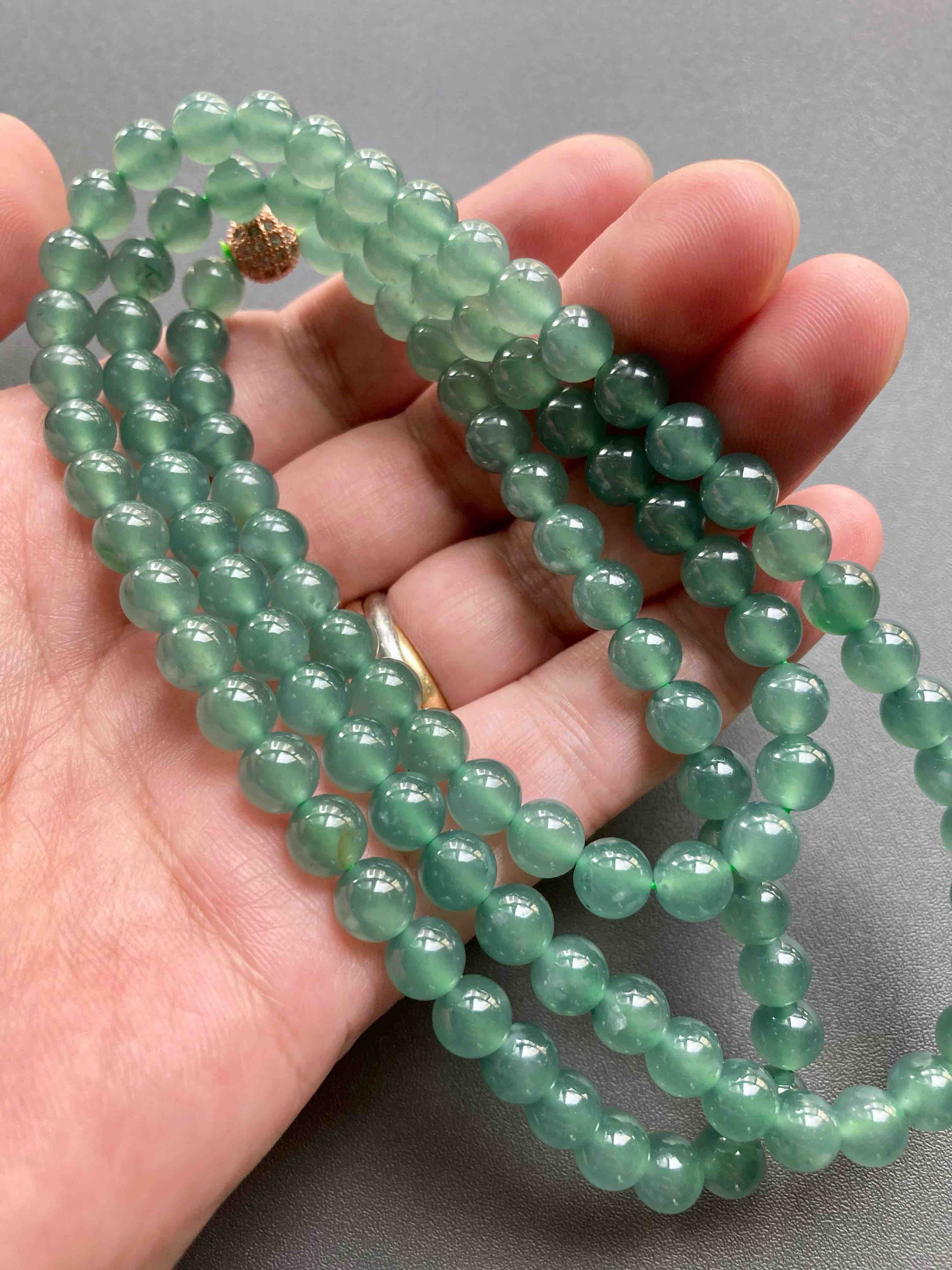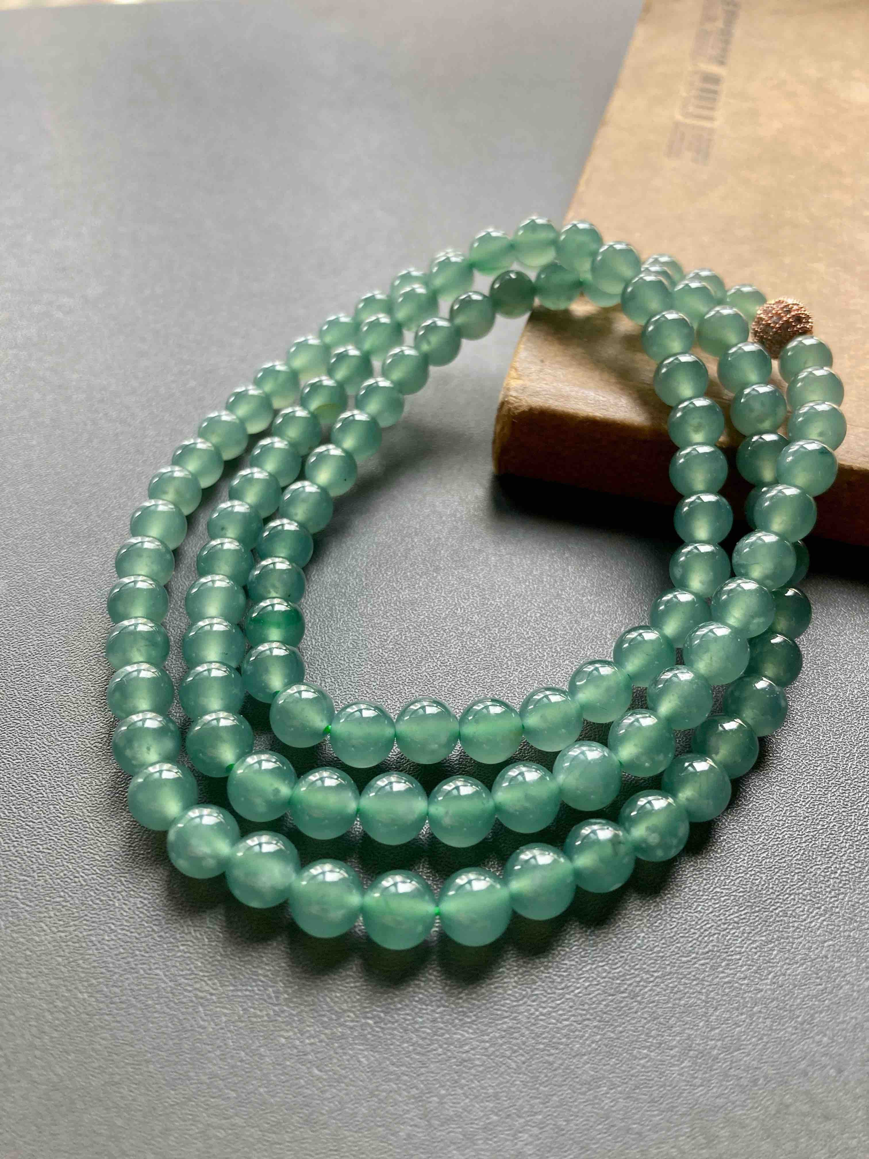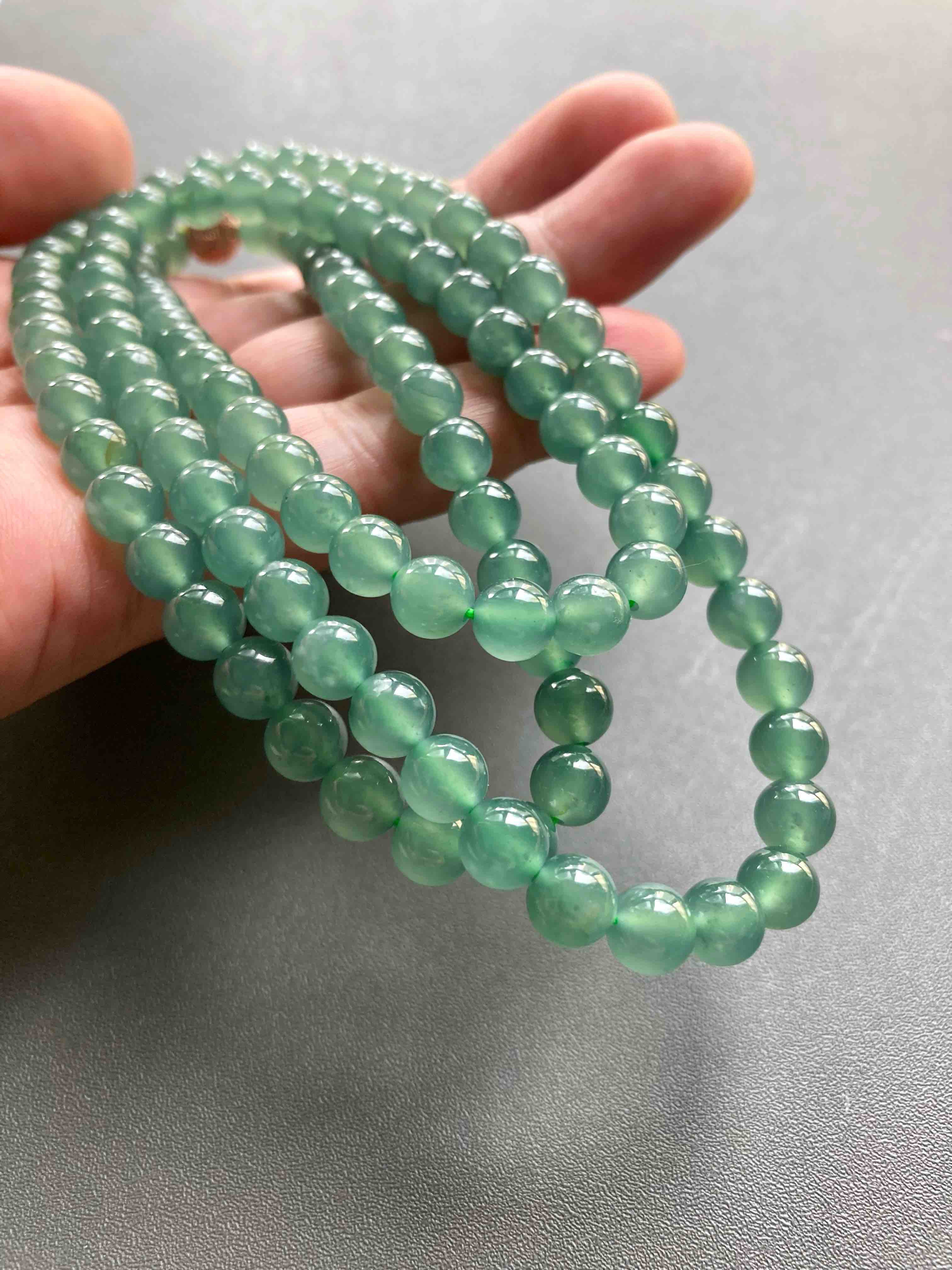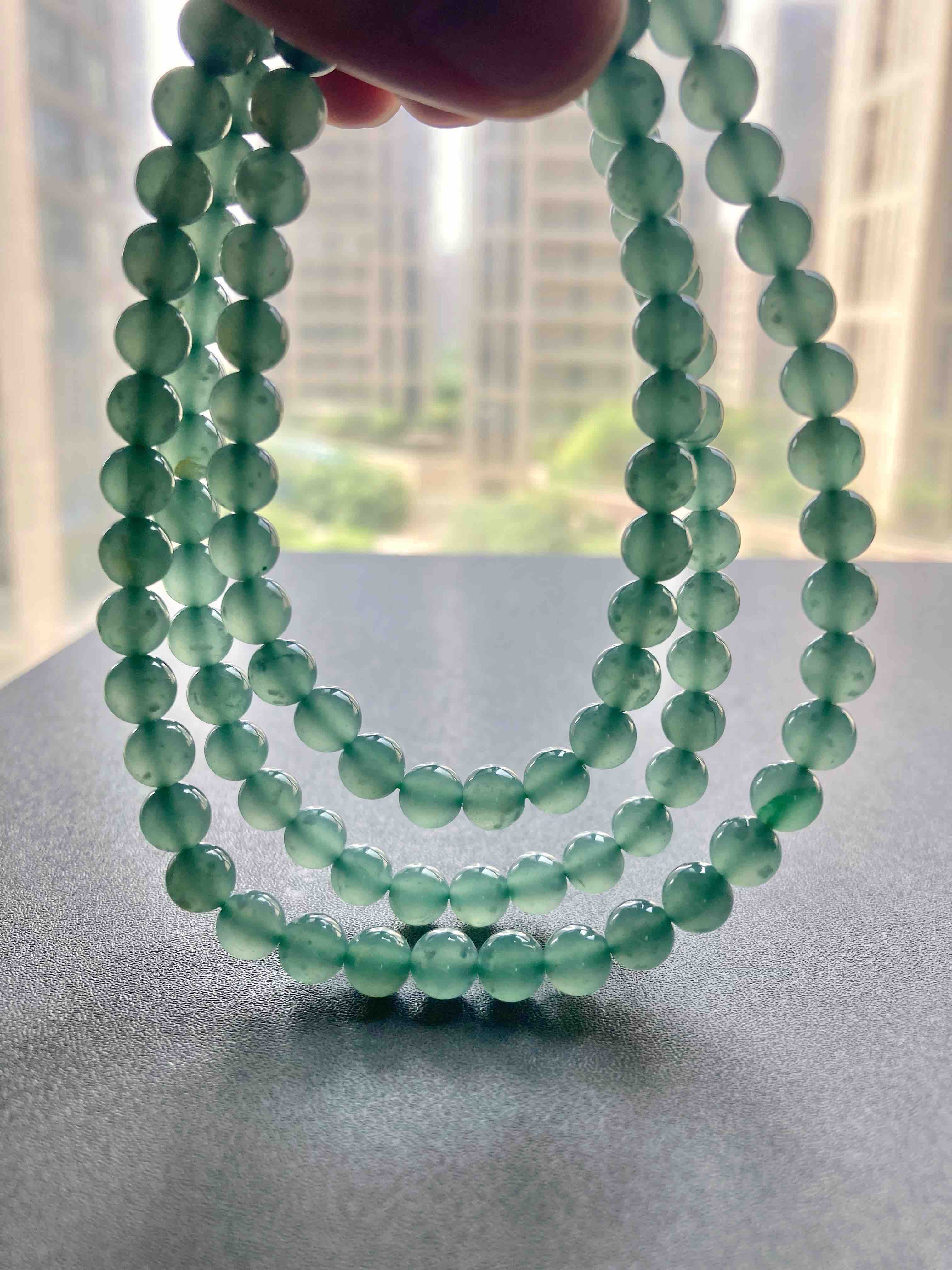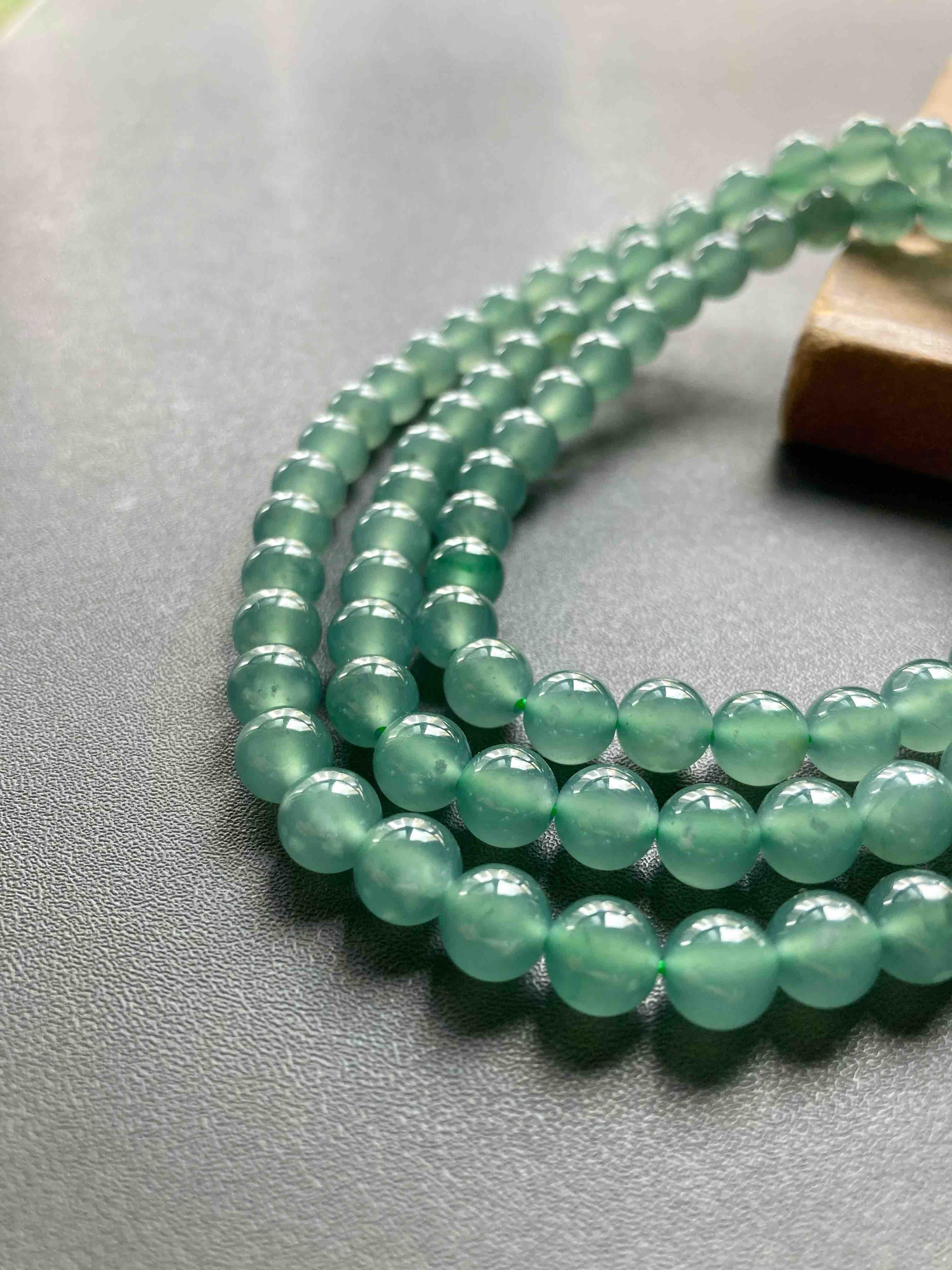 收藏级别高冰种蓝水翡翠珠串,108珠,种水美到爆,晶莹剔透,荧光四射,太漂亮了,非常少见的质量,纯美蓝水,朋友类似的他卖两万多,我告诉他我的价格,他哭了,说我卖太便宜了,要玩点好东西的赶紧来吧,一天一个价,早点入手是幸福,珠子大小7mm,总长50cm,可以做项链也可以多绕手链
