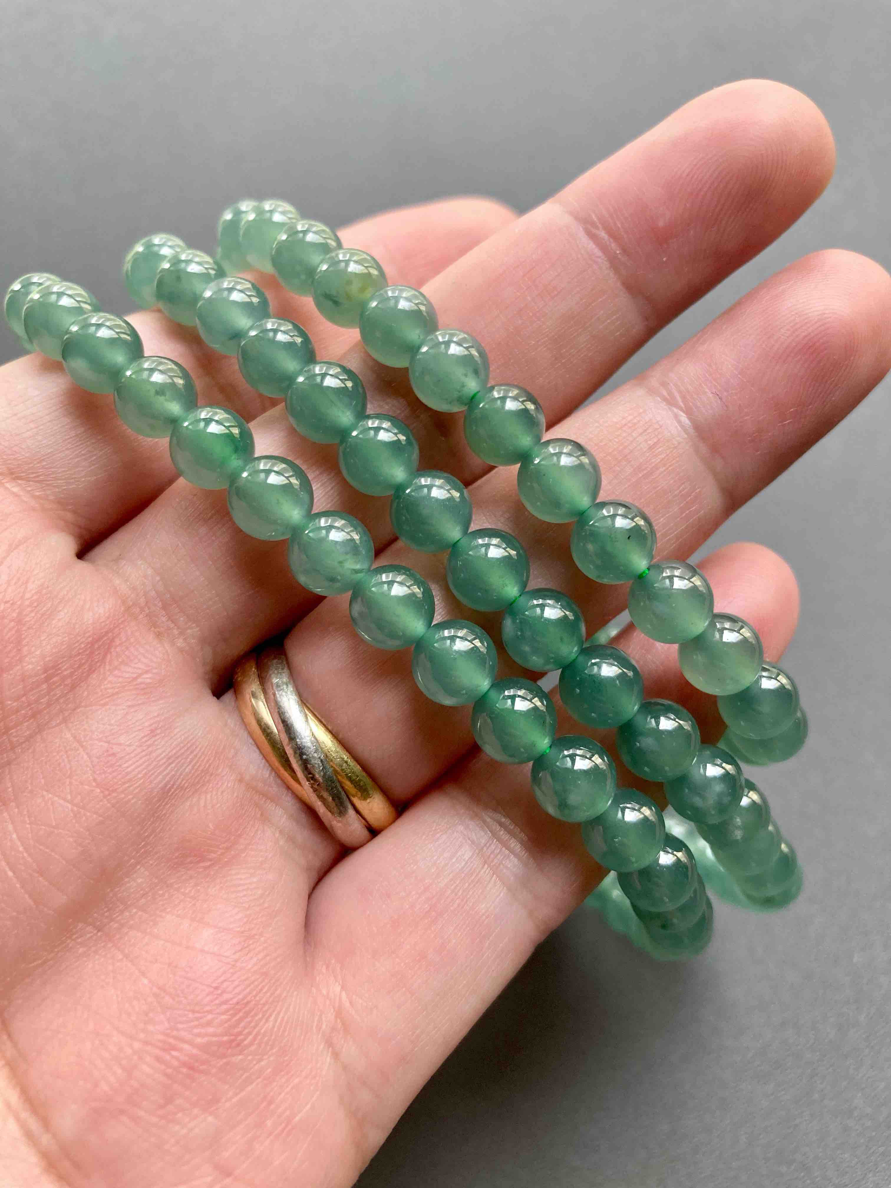 糯冰种翡翠珠串手钏18k黄金镶嵌