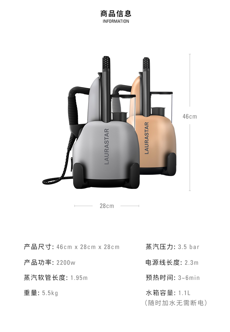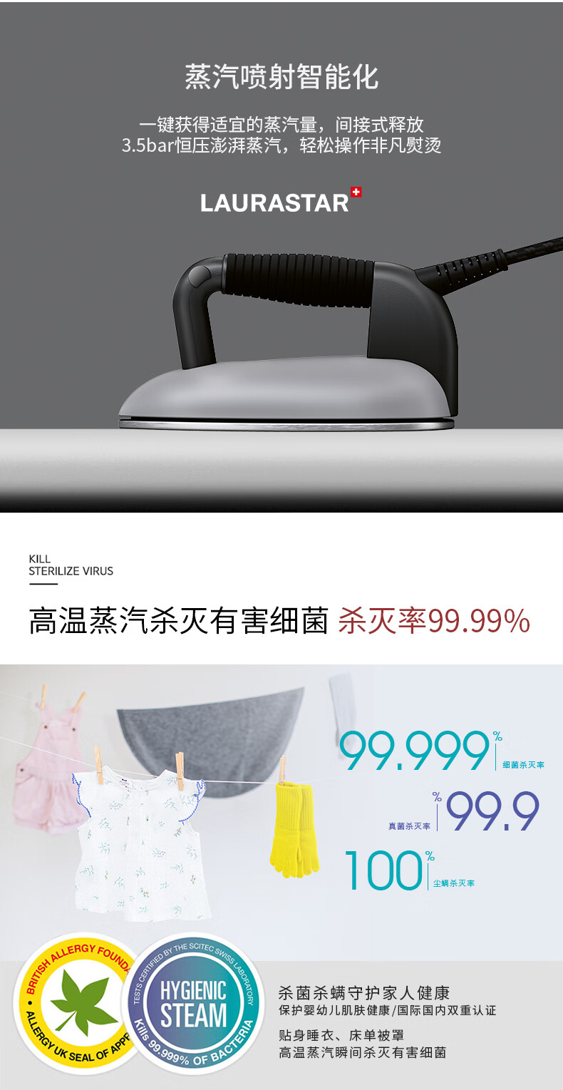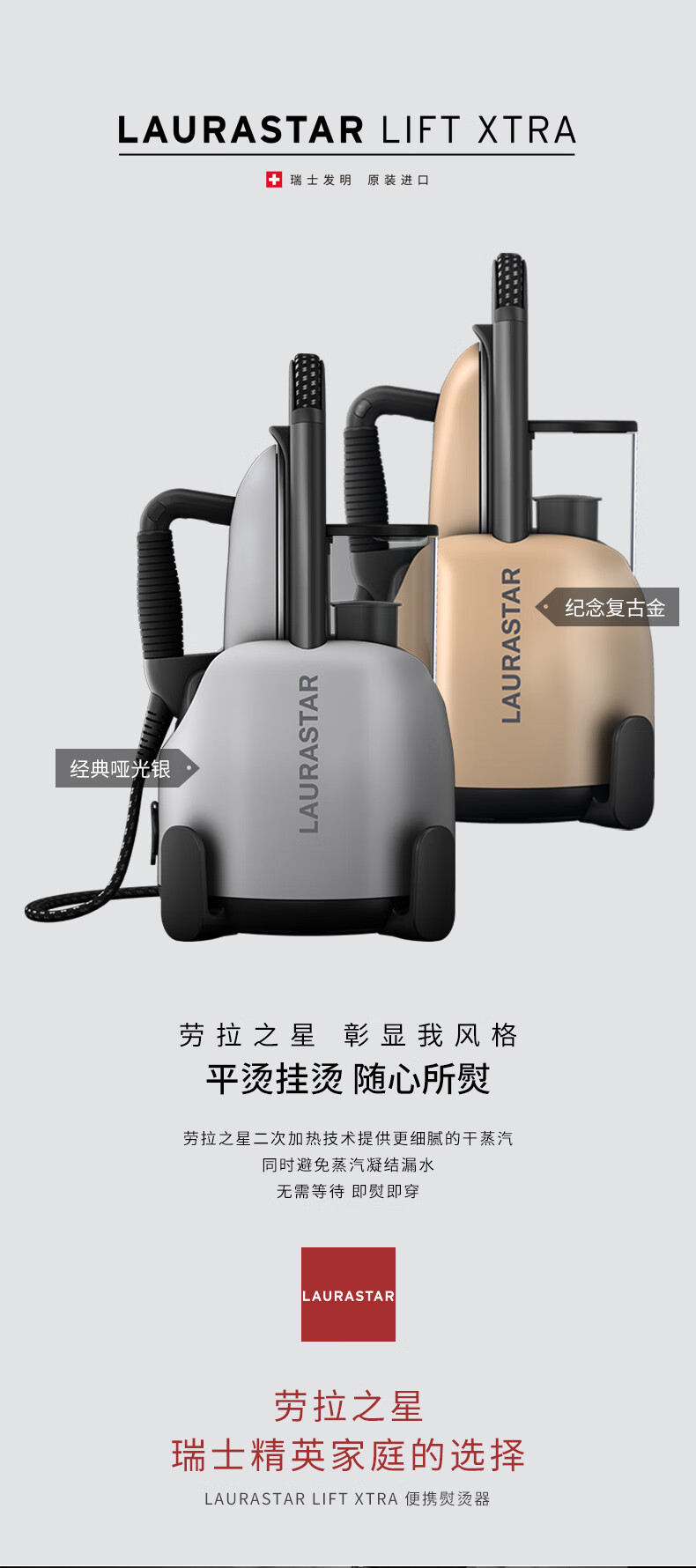 【6F】LAURASTAR(劳拉之星)瑞士 LIFT XTRA原装进口家用恒温智能蒸汽熨烫机 哑光银