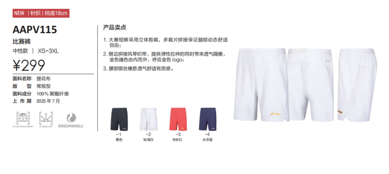 李宁 男款 国际球队大赛系列 比赛短裤 AAPV115