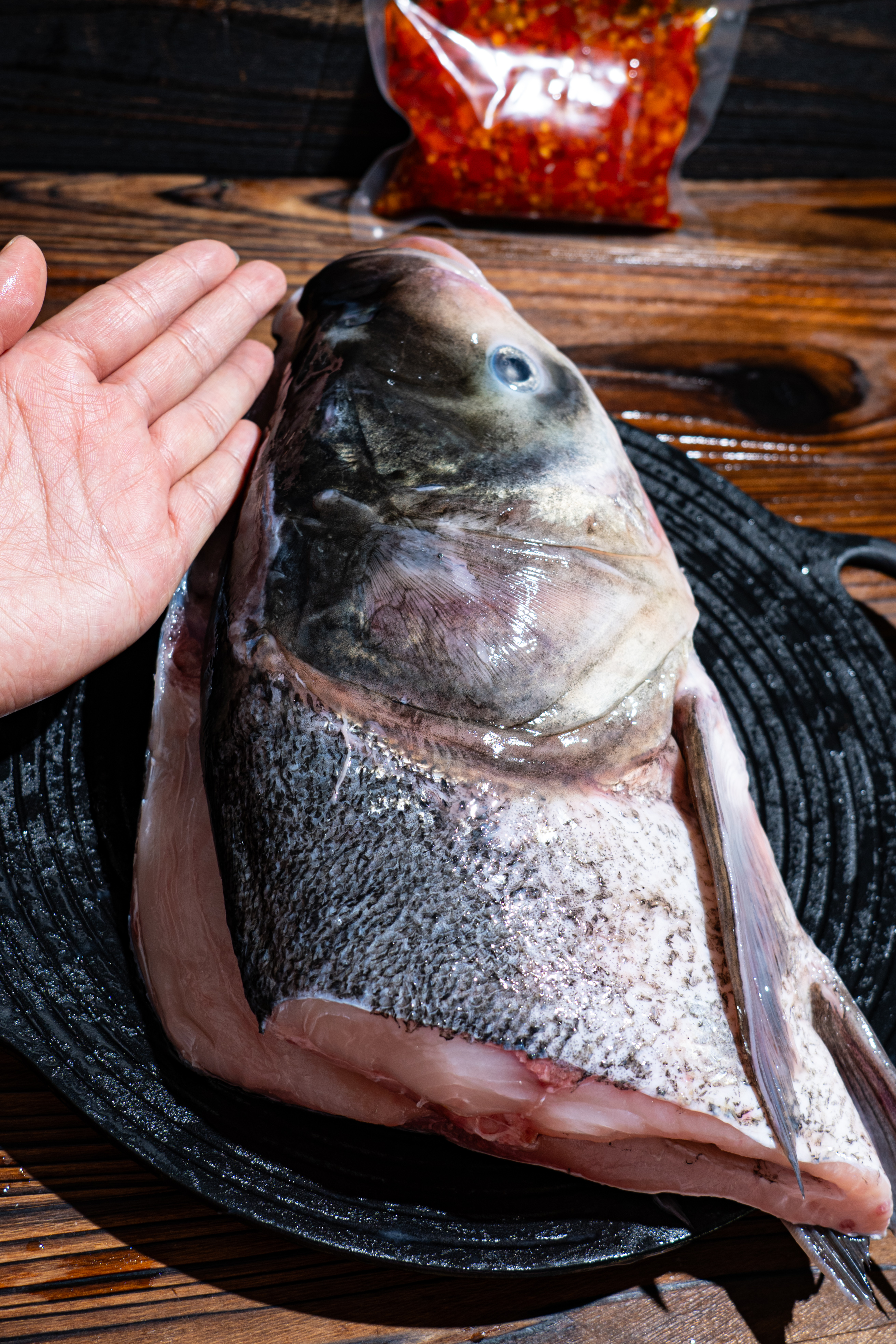 3、鱼头现杀现发,可能会有个别鱼鳞和鱼鳃没完全处理干净的情况,清理一下就行,介意的慎拍;