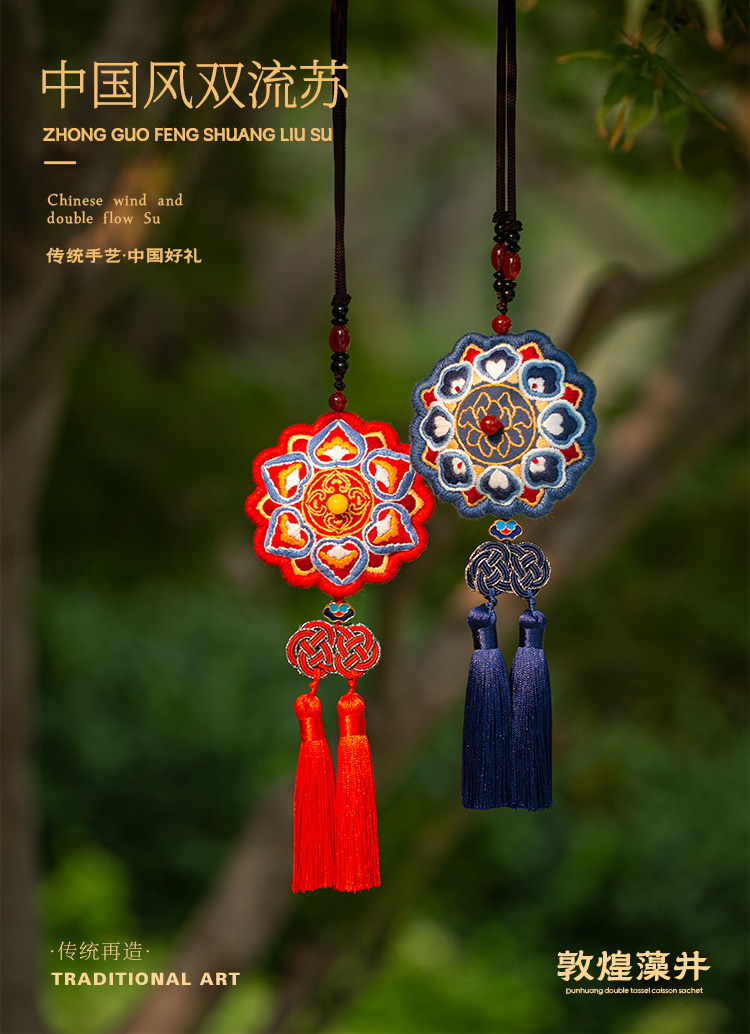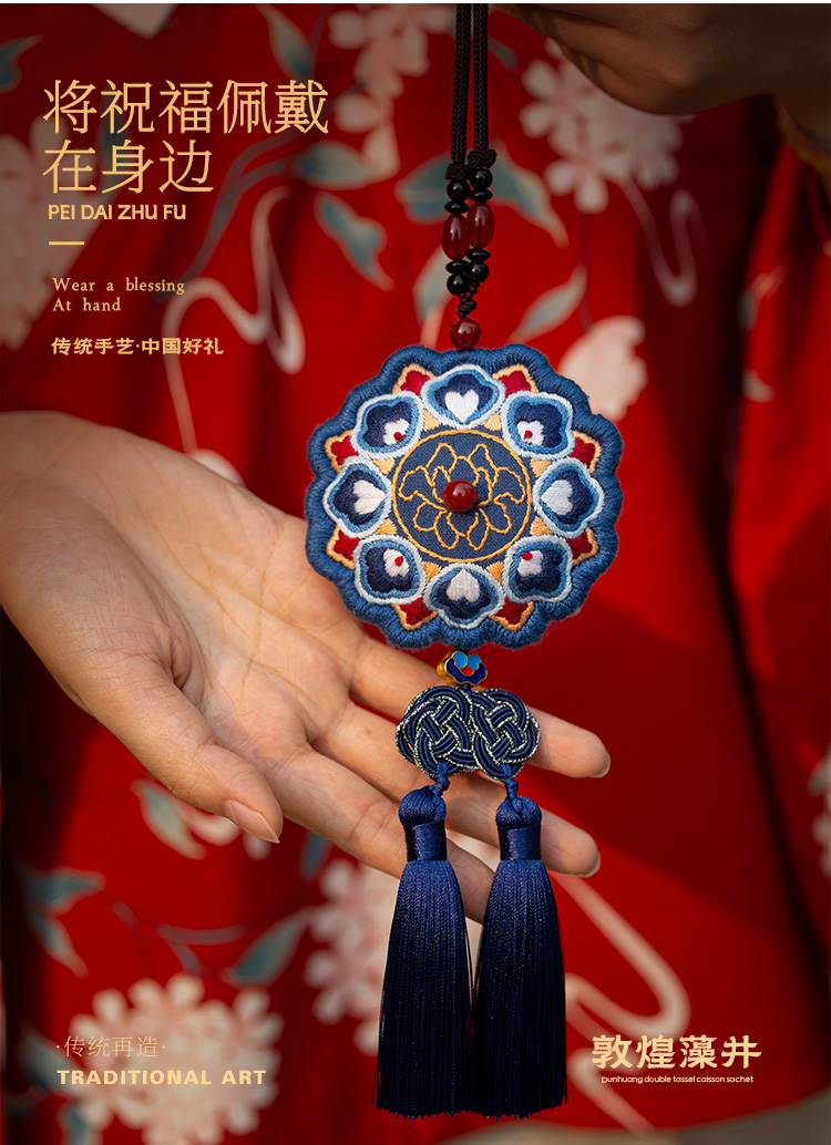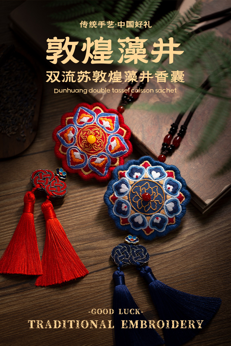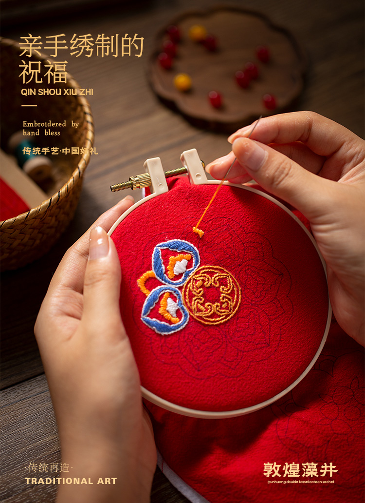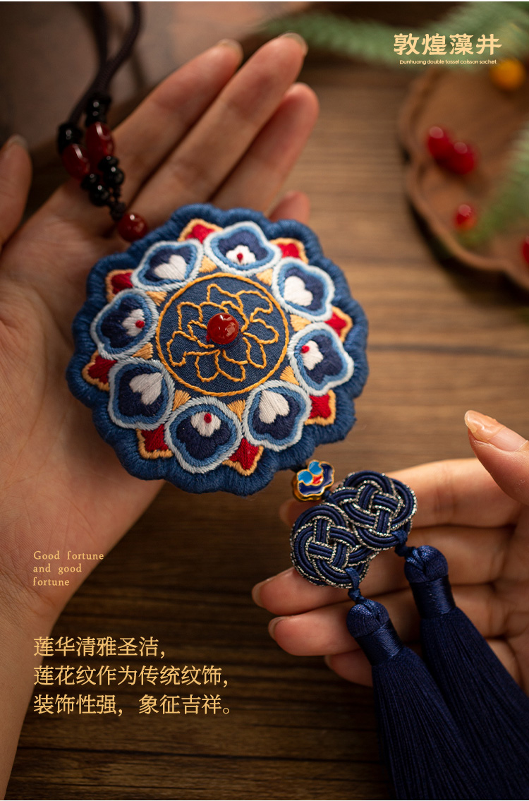 「吉祥如意+好运莲莲」双流苏藻井香囊刺绣材料包