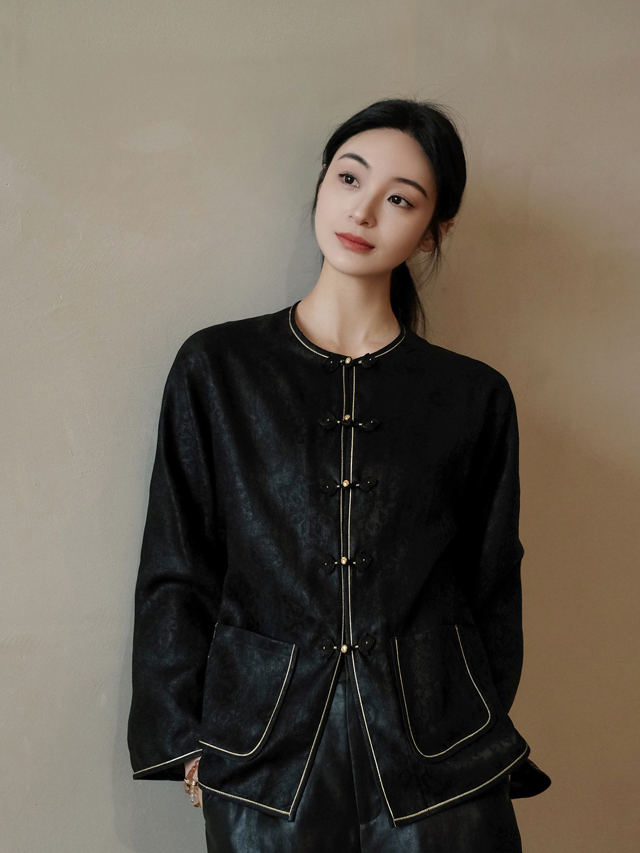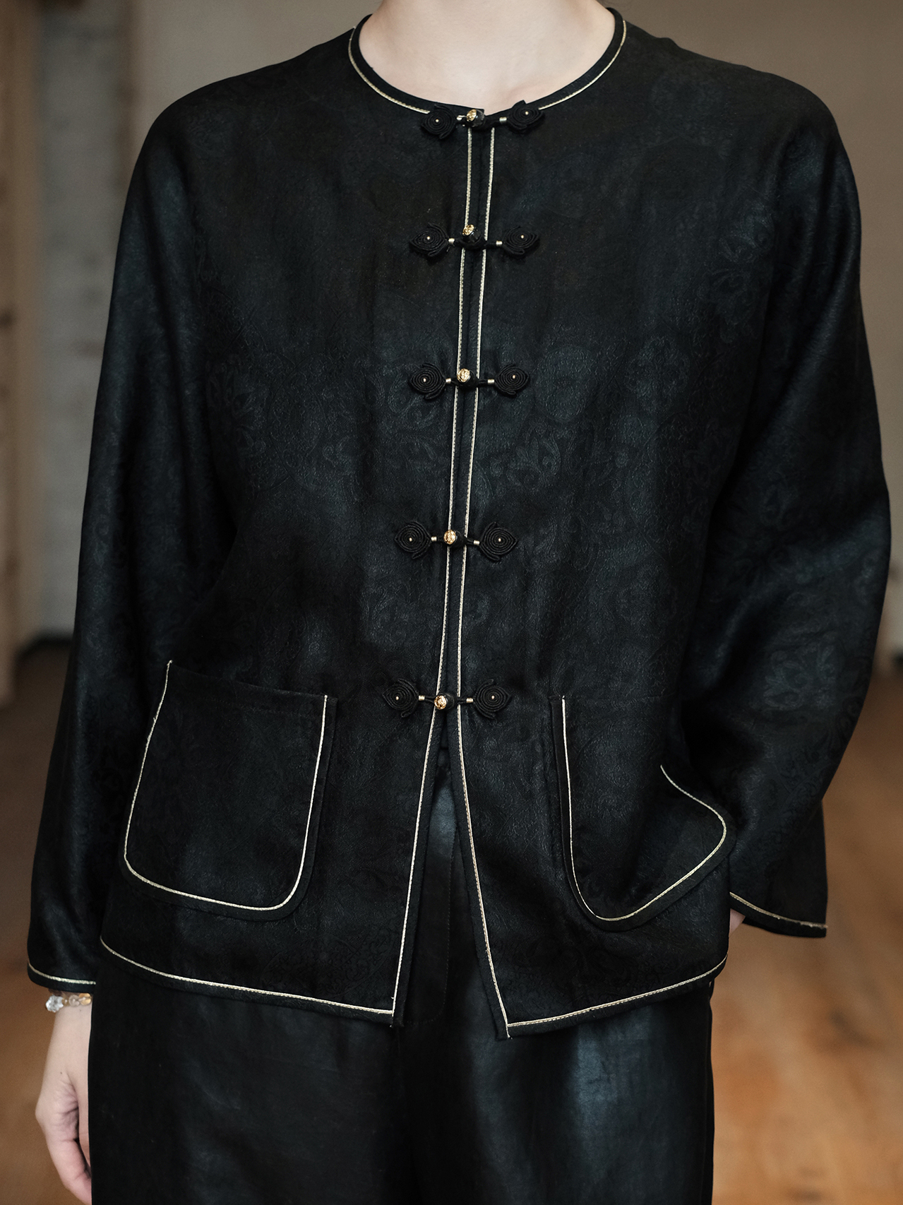 盛唐婧 | 新中式香云纱花罗对襟开衫外套