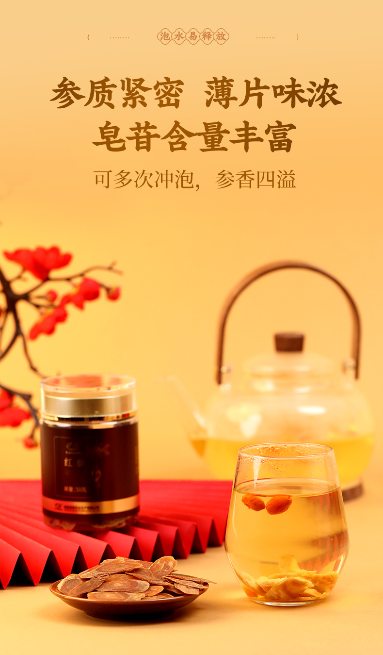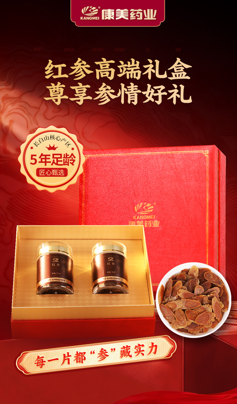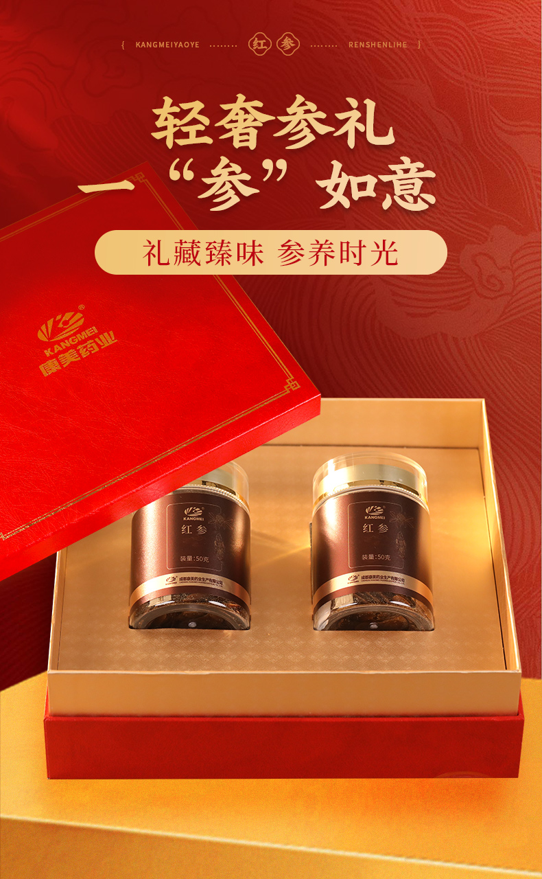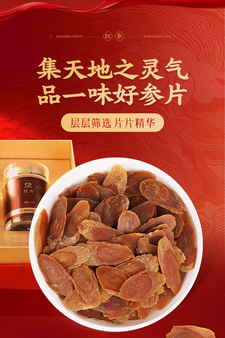 康美红参片礼盒100g/盒(50g*2瓶) 中药饮片红参片装 送父母长辈老人养生滋补礼品补品礼盒泡水营养品