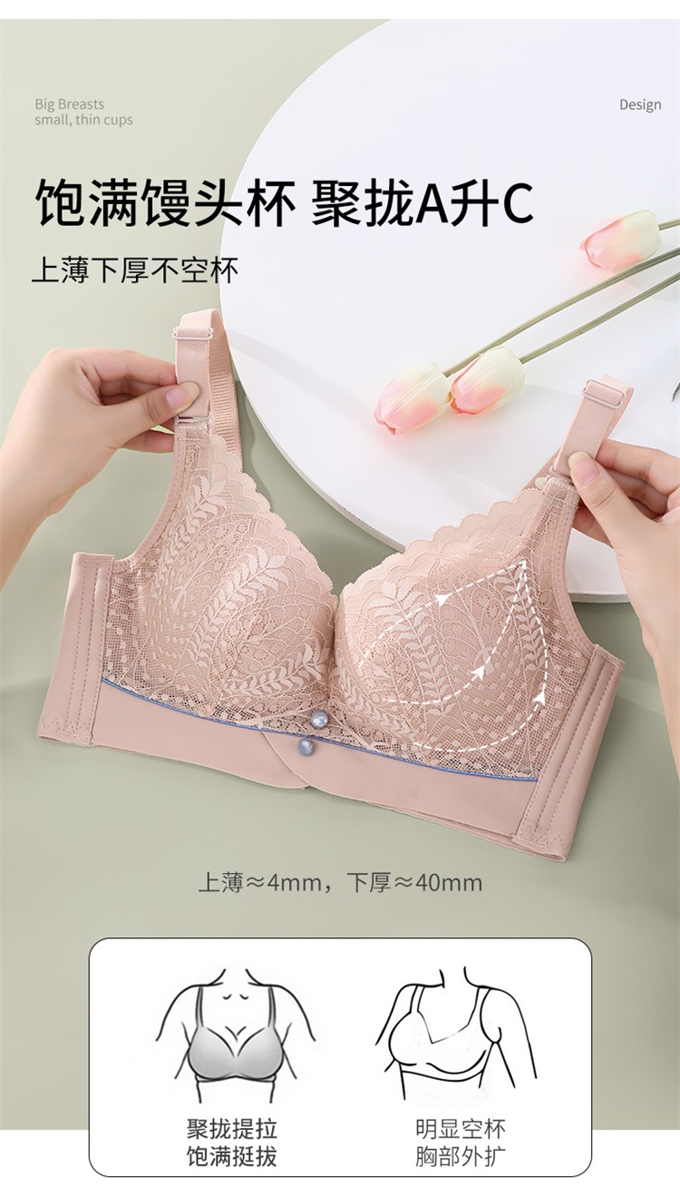 雅黛丽内衣女小胸聚拢收副乳防下垂文胸无钢圈显胸大女士蕾丝胸罩