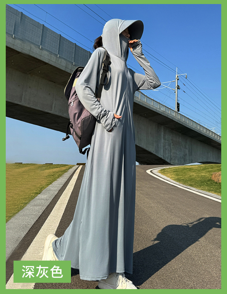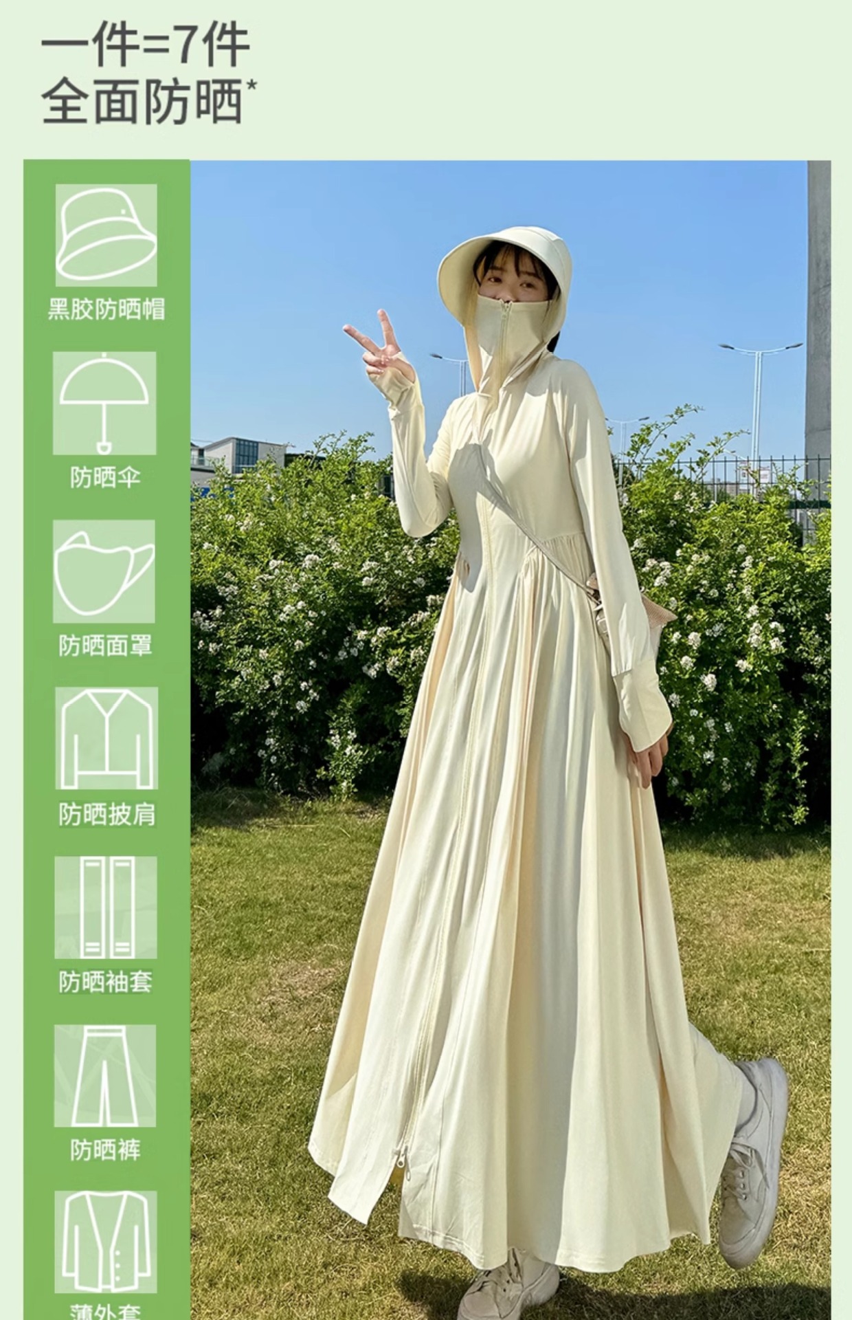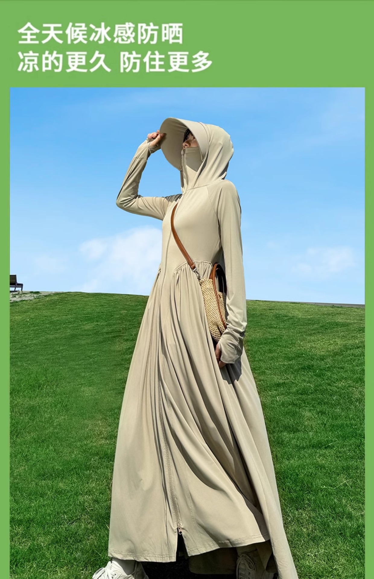 【无”惧“烈阳❗️全身长款防晒衣】采用云朵原纱冰丝面料,多向阳隔紫外线,时刻保持清爽。超宽松的版型设计,包容更多身形显腿部纤细,防紫外线修身收腰冰丝裙摆防晒服L